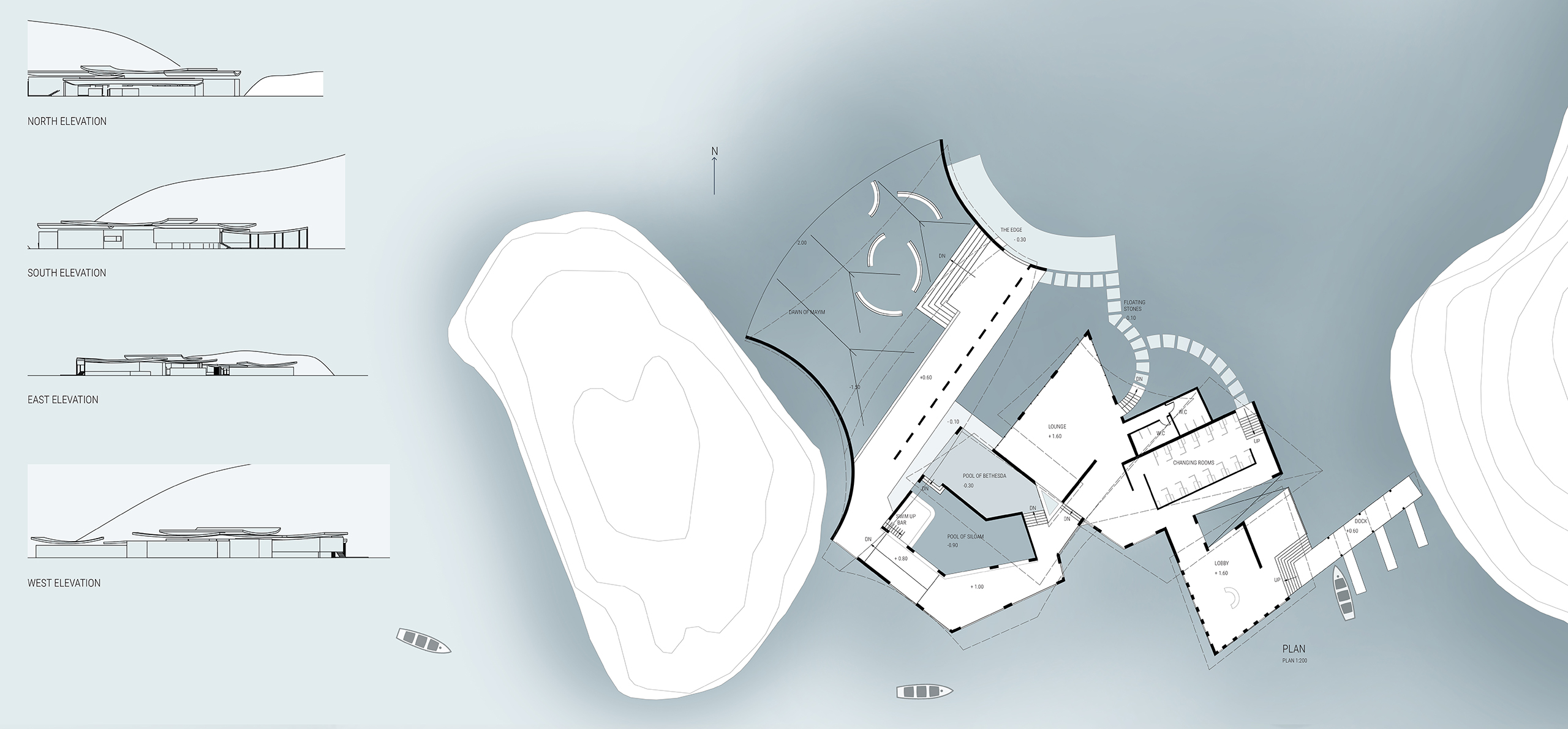 Beatrice Andres Share 0 Claps #architecture#architecturedesign Waters of Siloam / Project Rendering Waters of Siloam / Site Plan Waters of Siloam / Building Sections