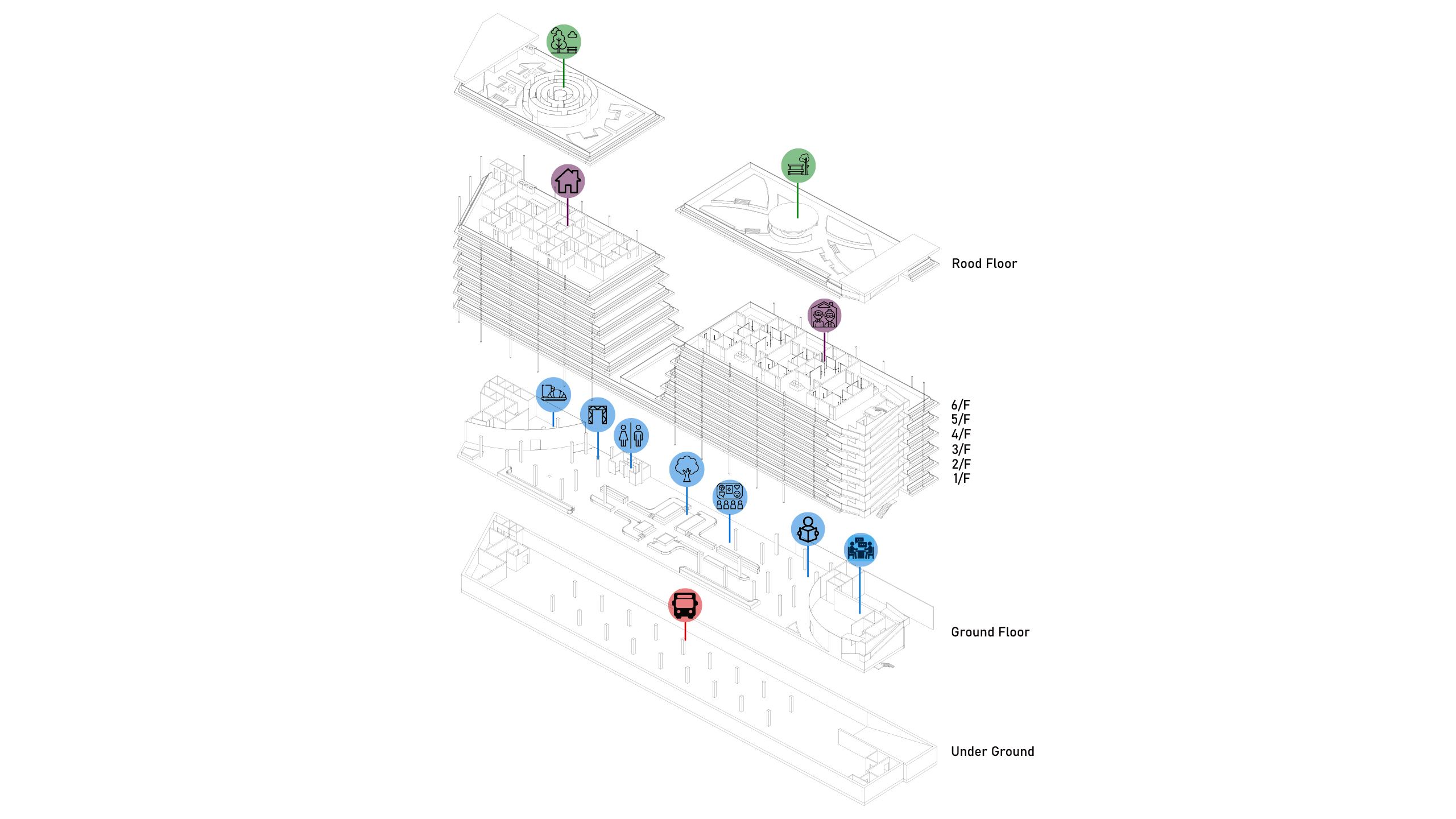 In the redevelopment area of To Kwa Wan, the project aims to provide buildings with corresponding support facilities, for residents transitioning from youth to elders. Under privileged residents are the primary target for improving the qualities of life of the design process.