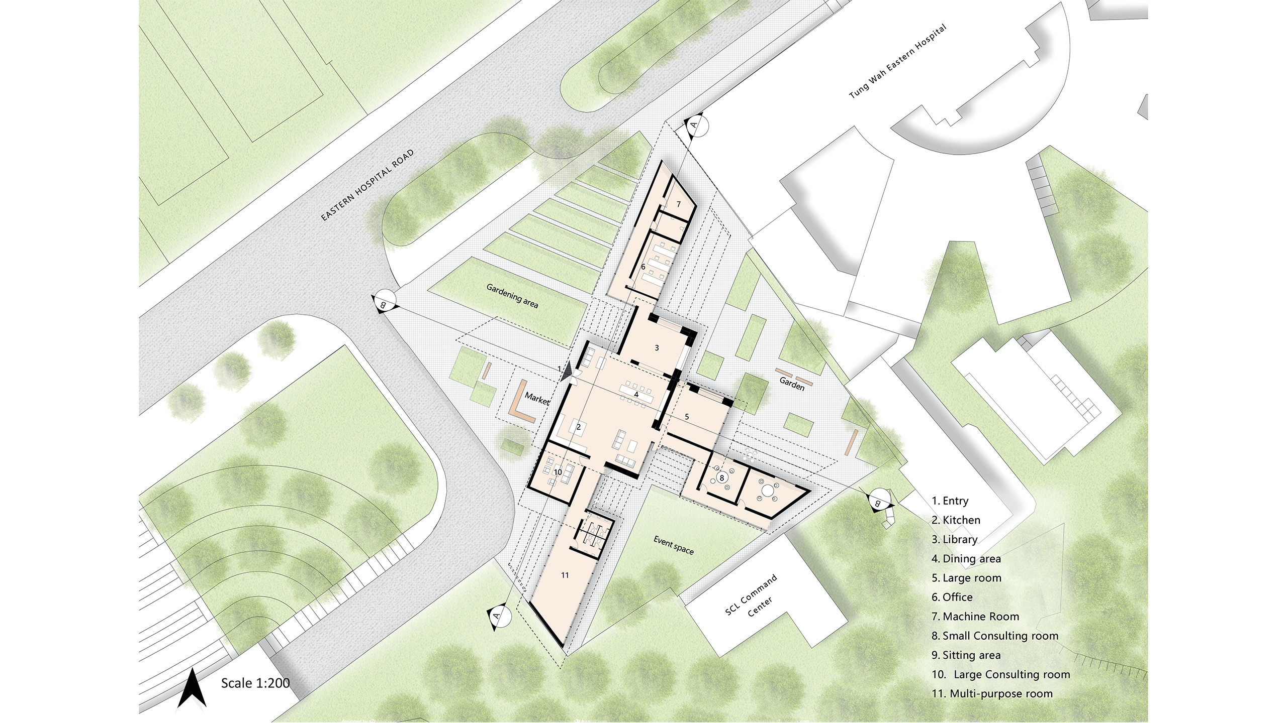 Cancer is a common yet special disease. The patients would require a special type of medical building for their treatment and healing. This proposed Maggie Center is connecting Tung Wah Eastern Hospital, to serve another layer of caring for cancer patients with juxtaposition to the large and cold hospital.