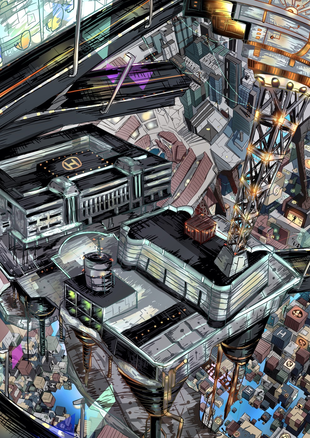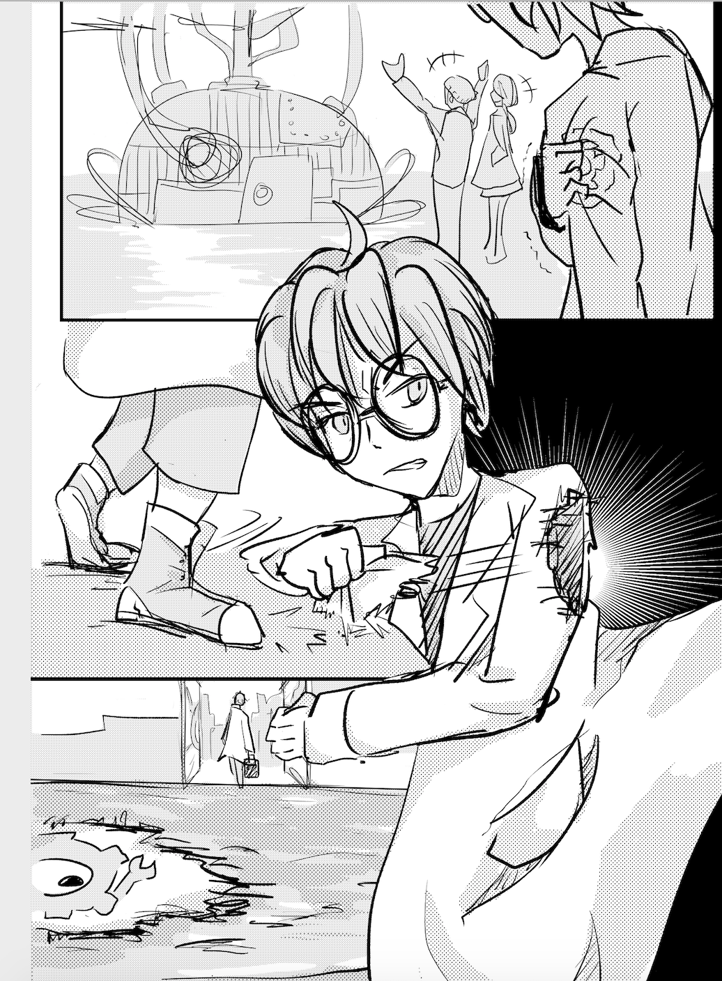 The medium chosen for my topic is digital drawing which helps to show the relevance to a futuristic worldview and demonstrate the relationship between humans and technologies. The overall design is in the form of a detective board, which serves to transform my future story from a science fiction to a detective noir or horror story to reflect the limited vision and imagination of human beings in predicting what the future world will be like.