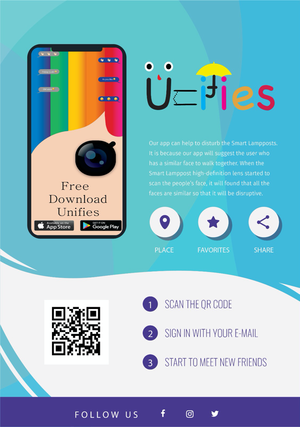 Unifies is an app for making friends. The target audience is mainly the younger generation, people who like to make friends and take selfies. With artificial intelligence, each selfie from the app will be shown to other users with similar looks and expressions.