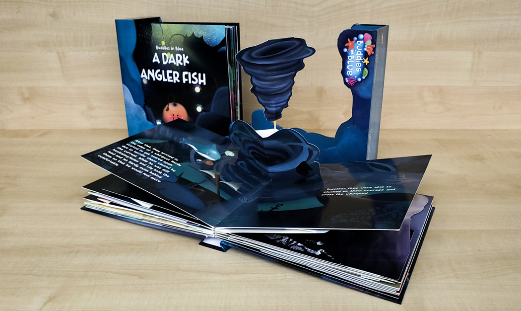 ‘Buddies in Blue’ is an educational pop-up book set. Unlike the other stories of the ocean in the market, the book set focuses on the topic of imperfection and discrimination. By telling the ‘imperfect’ story of the main character, the authors wish to deliver the values of inclusion and acceptance to readers, and emphasize the importance of friendship and courage. Readers can reflect on discrimination issues and treasure valuable friendships in a casual and lively way.