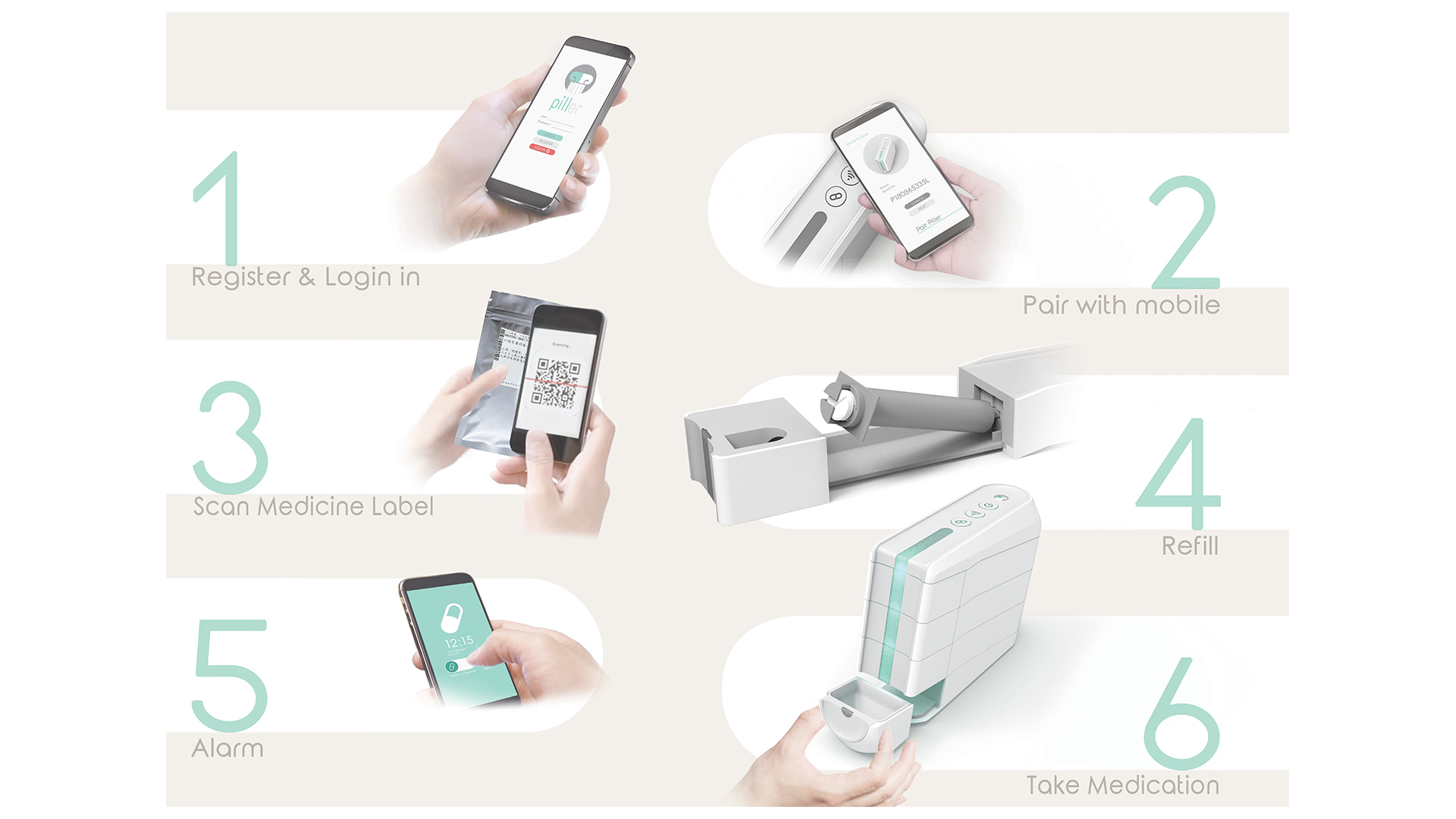 Elderly with Dementia usually forget to take medication. Piller can assist elderly in taking medication on time. By scanning the medicine label, medication instructions are retrieved and the scheduler is set up automatically. The elderly will receive notifications on time and take medication in one tap without trouble.