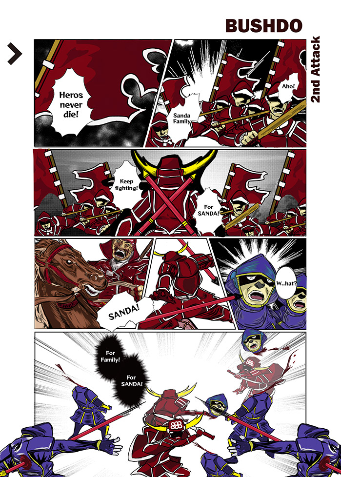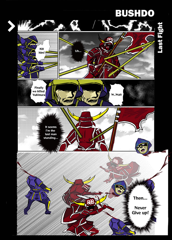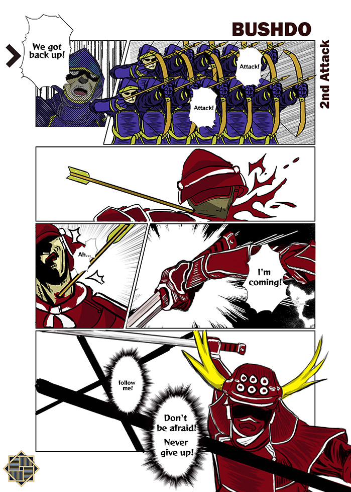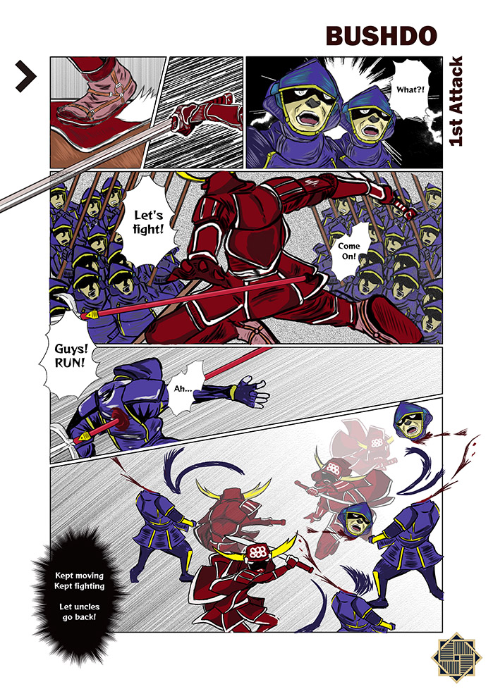 The target audience is teen travellers. The comic is the most popular genre of art in Japan and it introduces history differently compare to word description. It would simplify the long history into visual form and increase readability. The comic is in colour, it would be more attractive to describe the storyboard. The background of the cover and poster are painted with a bold and catchy brush to make a strong impression for the audience. My comic is not a book but it would be placed on the wall as an exhibit to introduce samurai.