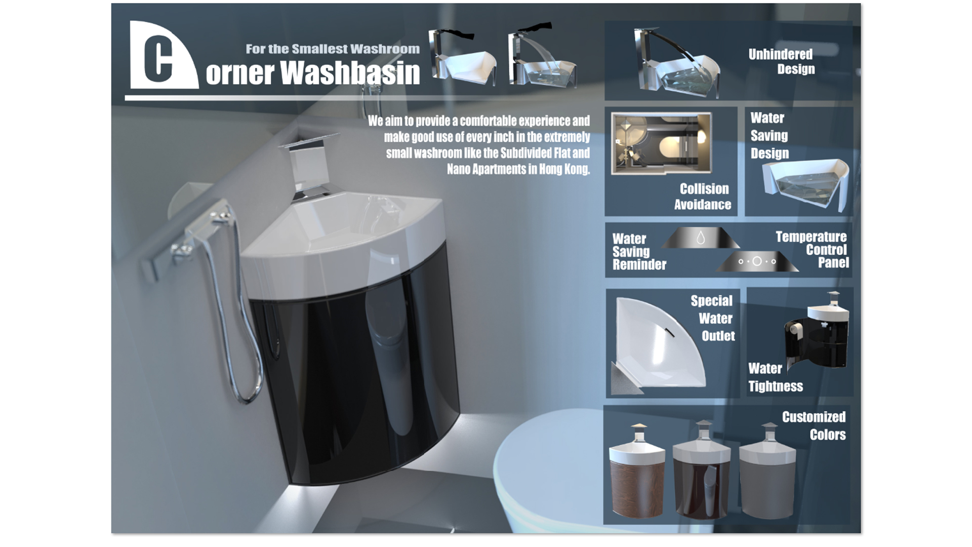 When I think of a city like Hong Kong, my first picture comes to my mind is a small and crowded living environment. Due to the impact of high property pricing, Hong Kong real estate is as valuable as gold, a pressing need for fully utilizing the space of the washroom is identified. Therefore, I design a set of bathroom appliances that can freely adapt to the size of the space to help urbanites achieve a relatively comfortable living state.