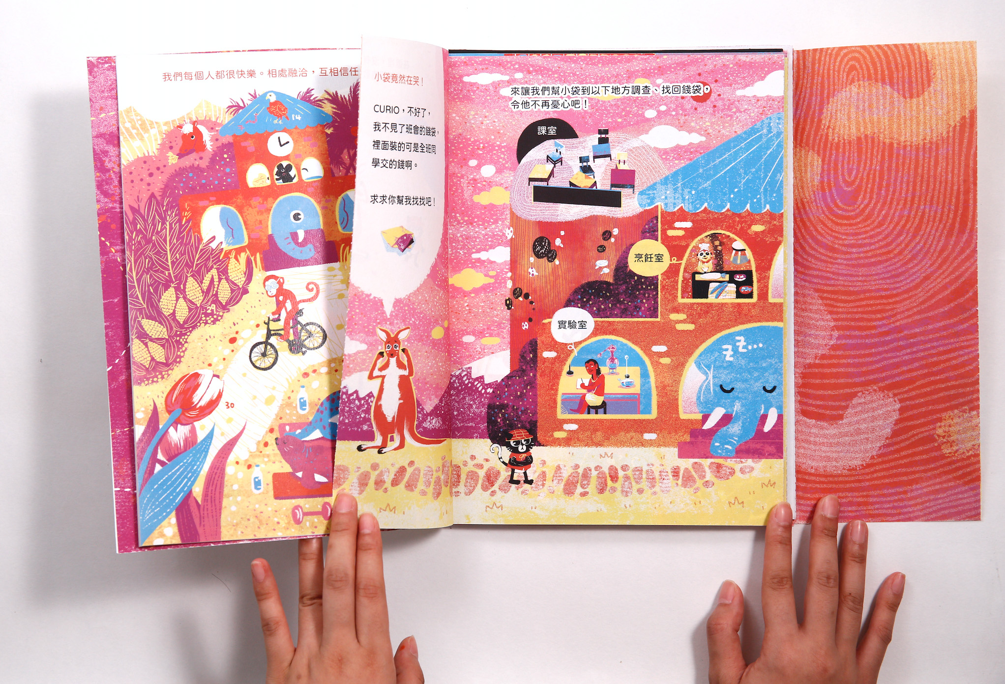 This project consists of a game-playing illustration book and a series of card games. It aims to create a fun learning experience for children to nurture curiosity and questioning spirits through interacting with peers and family members. In this book, story line can continue and new information can be collected by questioning meaningfully. Children are required to explore, identify and analyse the information. Think independently and make their own decisions by tearing specific pages to uncover the truth. In the card game, children can learn knowledge and facts about the reality, nurturing their curiosity towards the world.