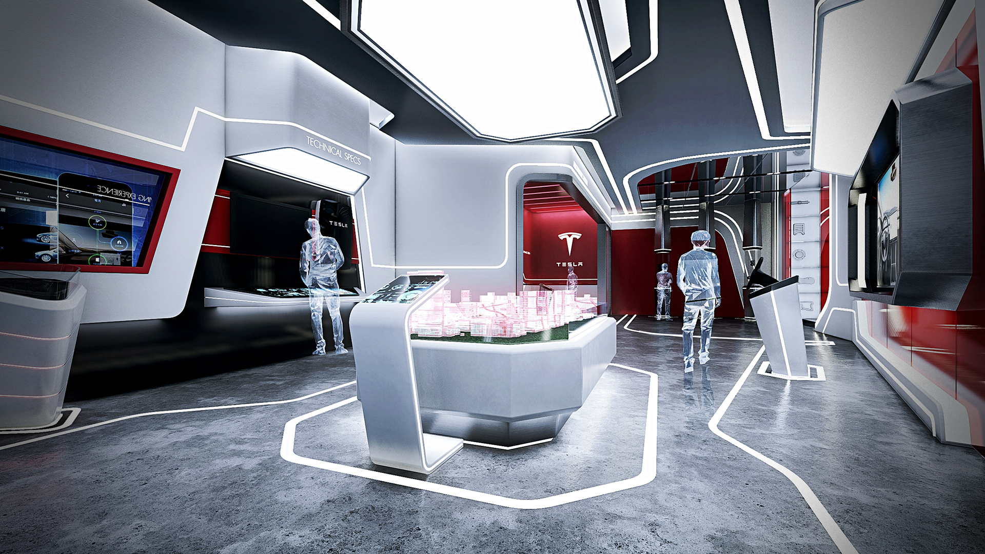The design concept of the experience center is "driving the future". The visitors can gain a deeper understanding of energy issues, brand identity, and Tesla electric vehicle technology. Visitors can also get information on future concept cars.
