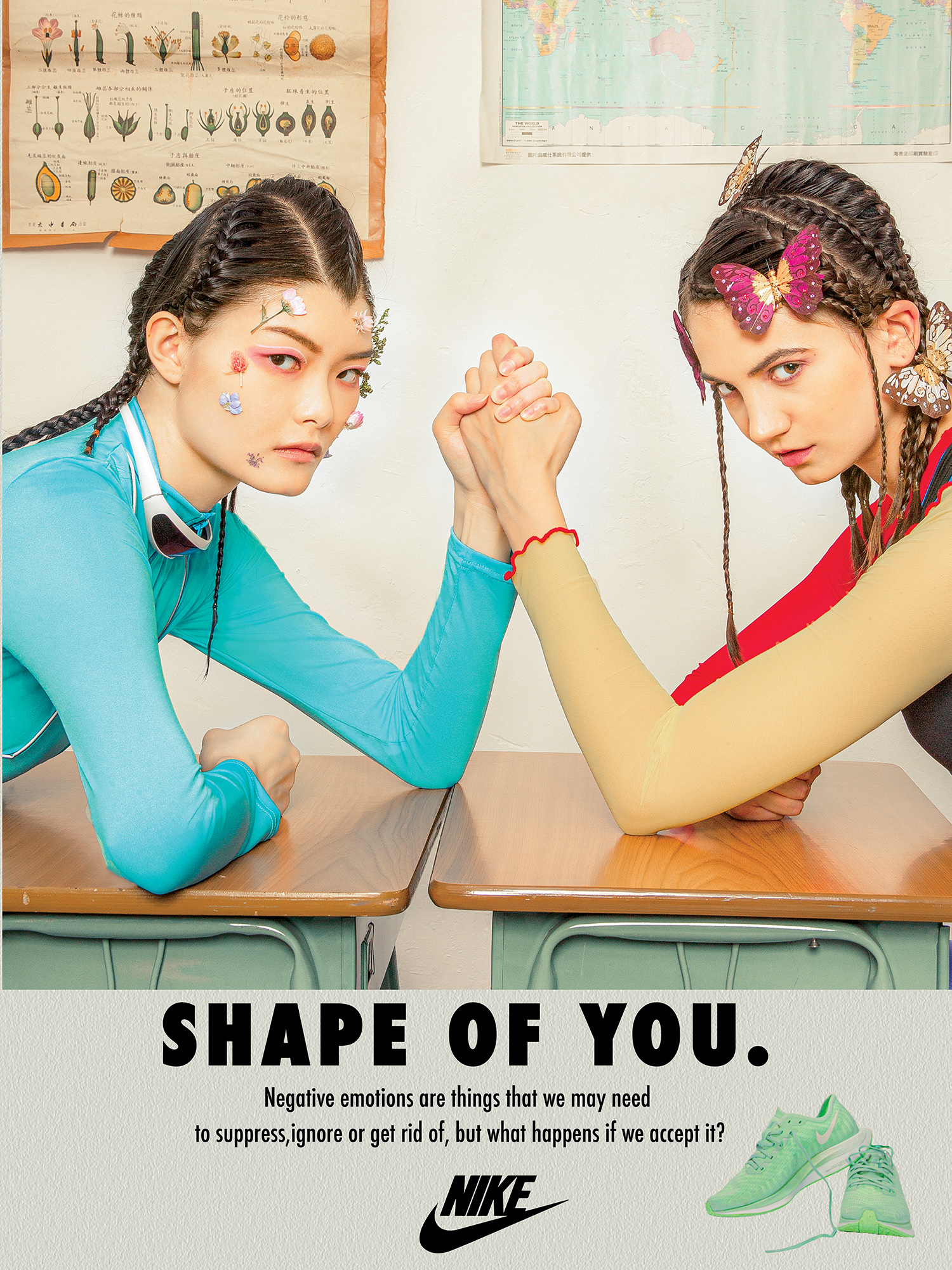 According to research, mental illnesses such as depression, anxiety disorders, schizophrenia, eating disorders and addictive behaviours are on the rise and becoming a bigger issue in the society than ever. The study also found that young people's mental incompleteness, coupled with hormonal changes, may lead them with extreme behaviour when dealing with mental problems. Targeting teenagers, the fashion campaign “Shape of You” promotes sports as an effective means and lifestyle to alleviate negative emotions and enhance mental wellbeing.