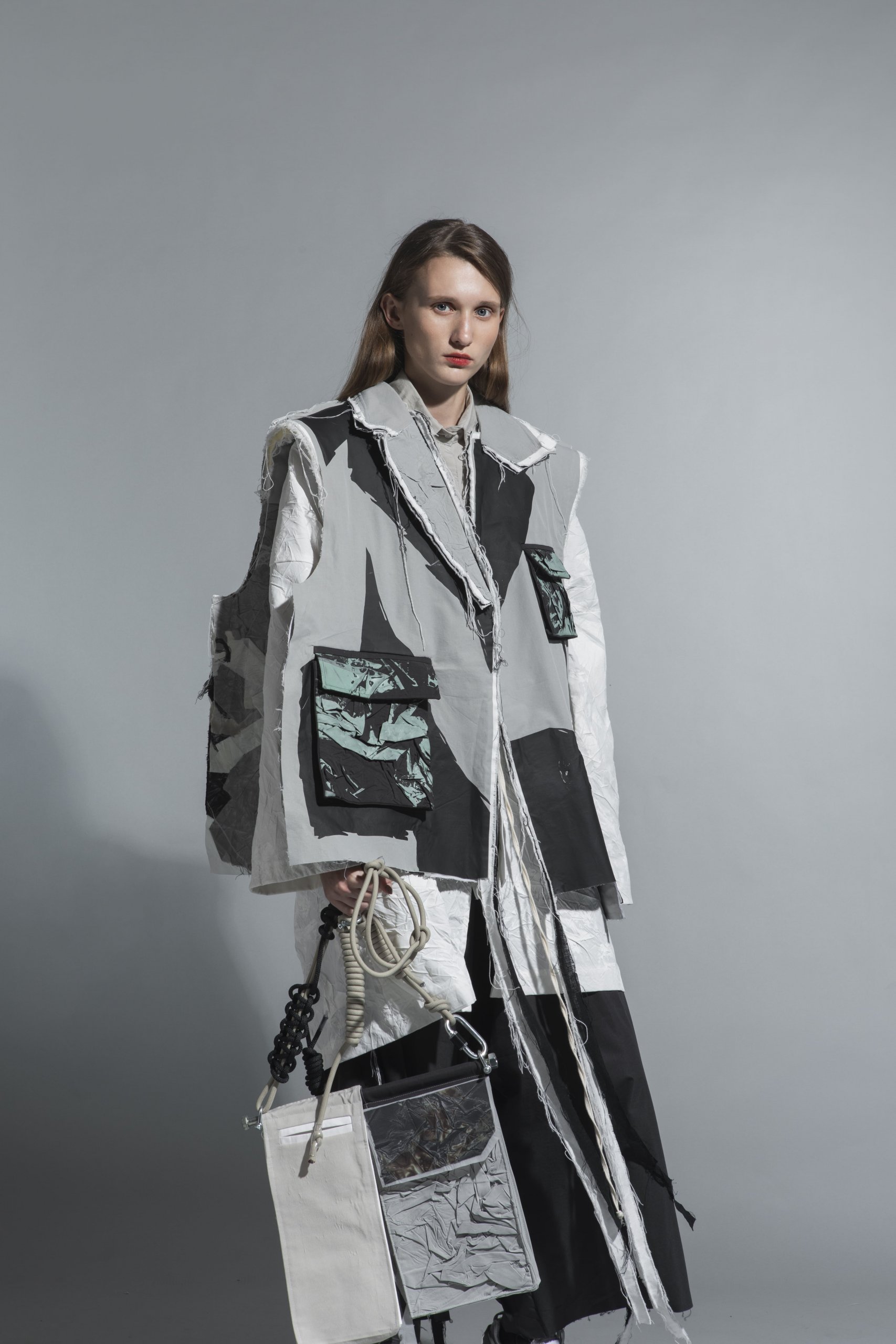 /PRESERVE STH/ is about fashion sustainability. Hong Kong is an overcrowded city where people often use vacuum bag to store their clothing. My design inspiration comes from the concept of “shrinking theme” = more for less. I have compressed the fabric scraps with biodegradable plastic (eco-friendly) to create a new type of material. The unisex design direction is stylish and comes with a strong theme of Zero wastage.