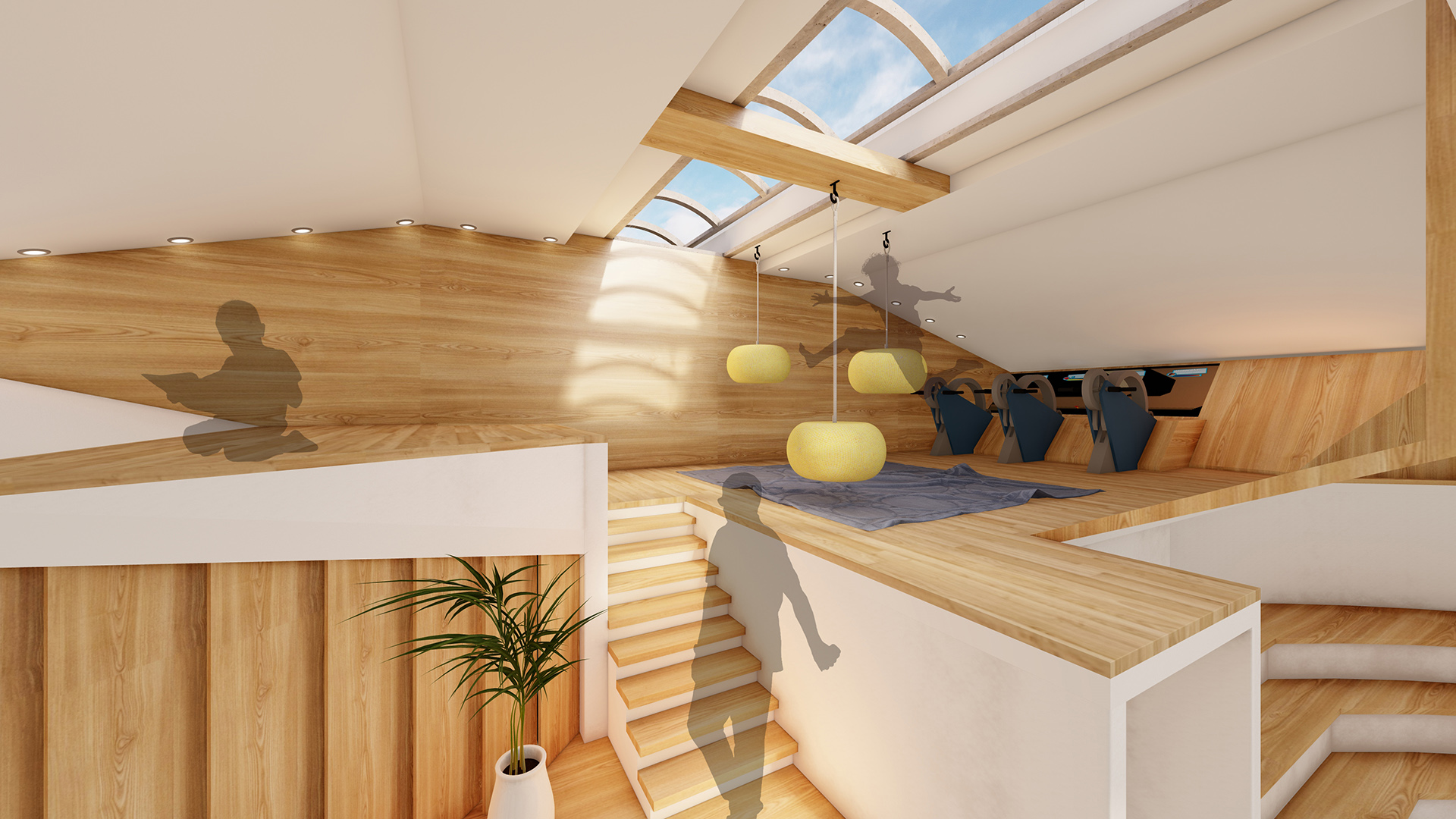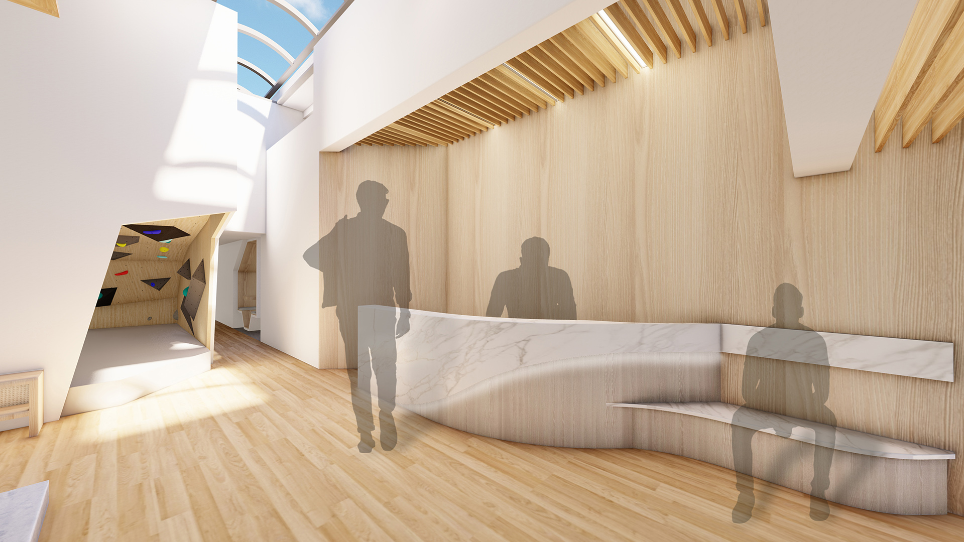 This project hopes to correct the misunderstanding of mental health issues, help those people in need to solve mental health problems, and explore methods and possibilities of a harmony life. It is hoped that people may reduce the dependence on material conditions and concentrate more on mental needs. The design programs will be focus on two aspects: physically and mentally. Physically, it will have a bouldering room and game corner to allow people to improve fitness and interaction with others; mentally, it will have counseling rooms to orientate and teach people how to release and relieve mental sickness.