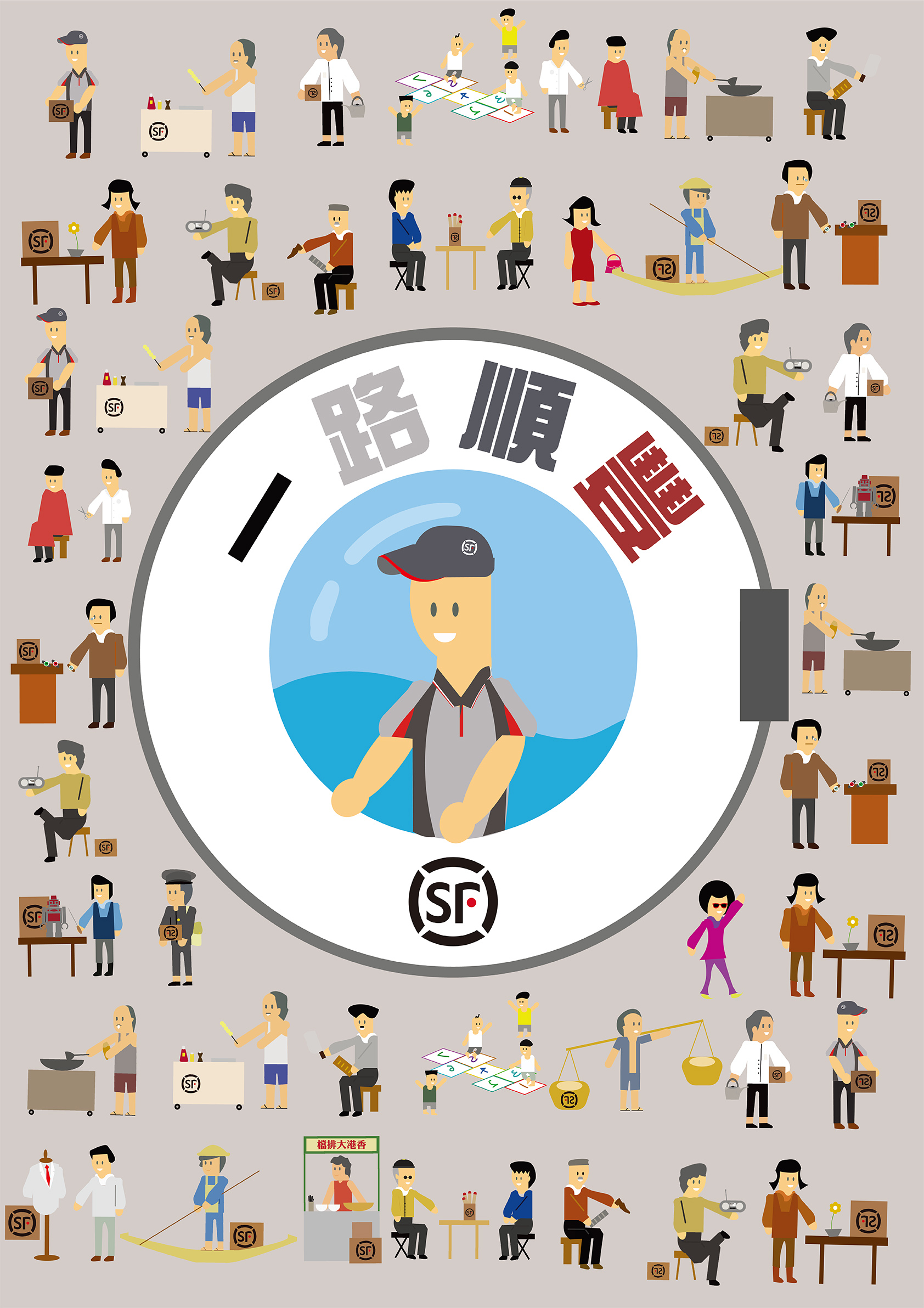 Originated in Hong Kong, SF Express has always been taking care of their customers every step of the way. We aim to build up a brand new image for SF Express with local features. The Chinese version of the tagline ‘bon voyage!‘ is a pun on ‘good luck’ in Chinese, meaning that deliveries made are safe and sound. Our target audience is local Hong Kongers. Our cultural-based designs could resonate among them. Because of the Covid-19 pandemic in 2020, people are now paying more attention to personal hygiene, and the needs for good hygiene has become a global trend. With this in mind, we hope to create a safe and confident image for SF Express.