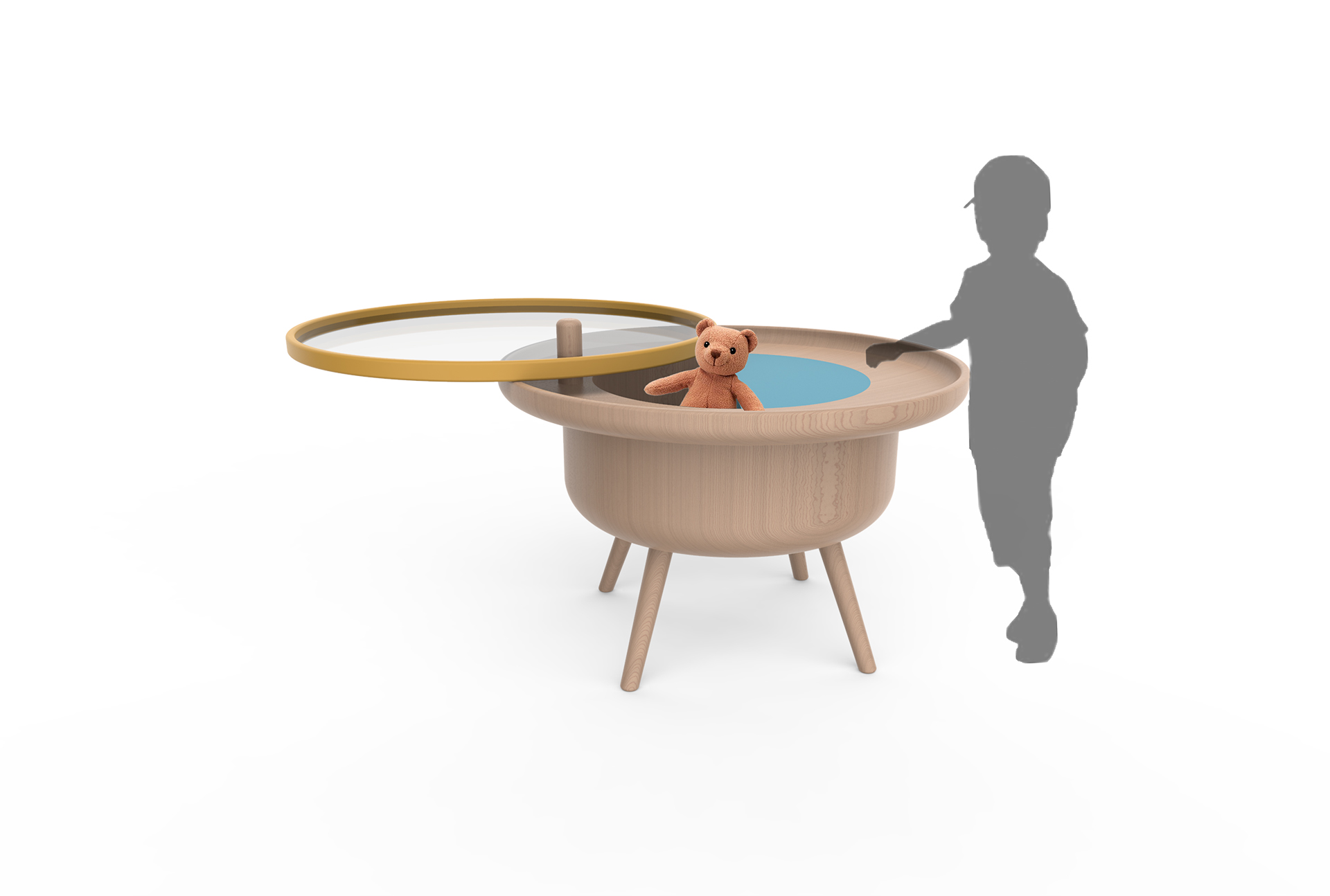 Shareable does not only lets parents and children to share the usage but also lets them to share their time together, despite the busy schedule of parents. Shareable comes with a rotating table top, which allows an extra table surface for adult and open up a play table for children.