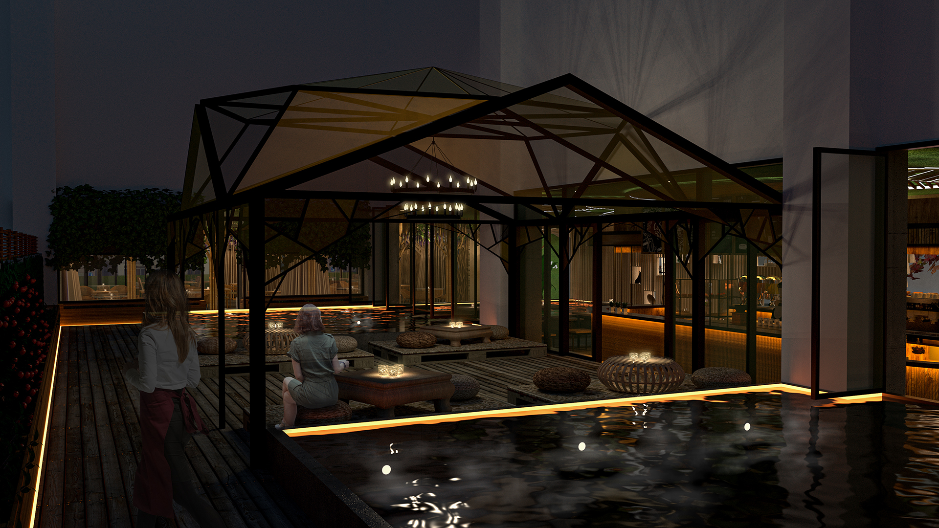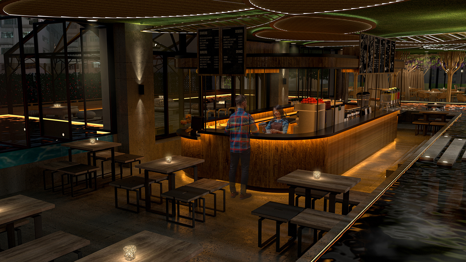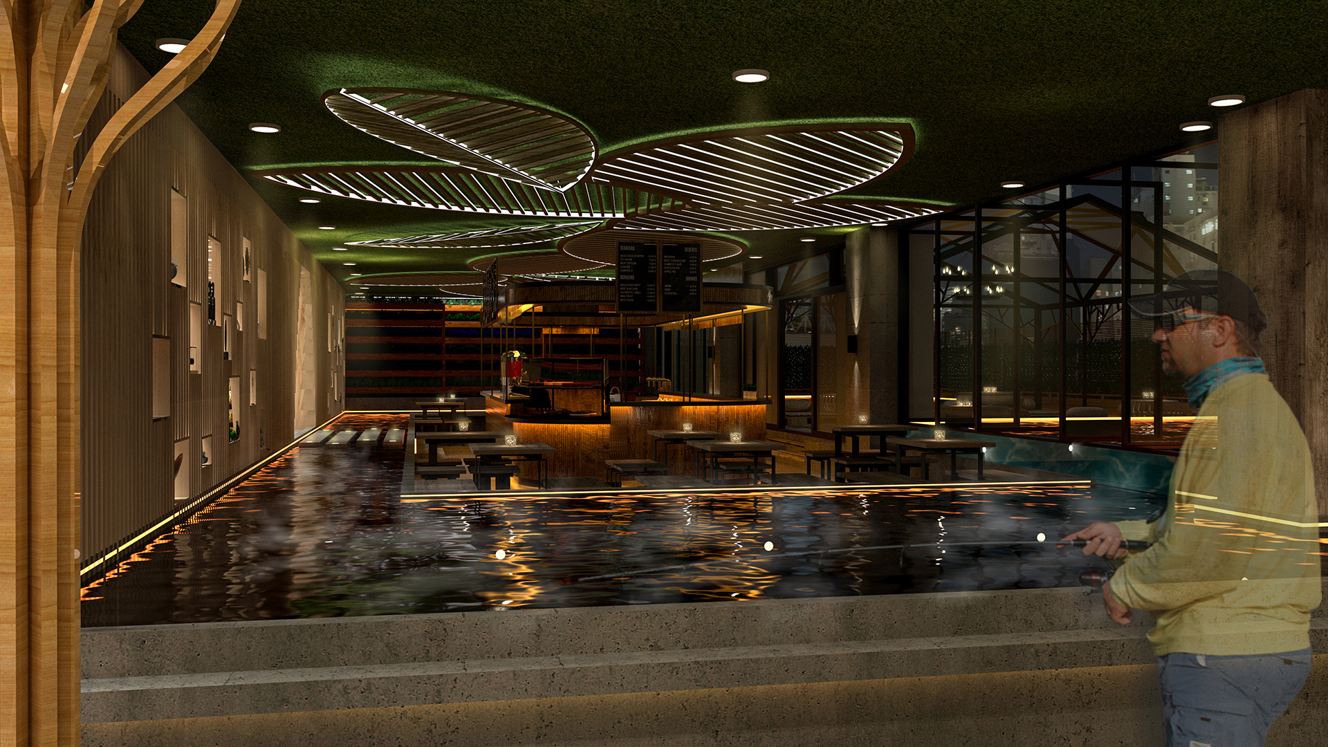 With the latest trend of “Farm-to-Kitchen”, my concept is to design a restaurant with an open onsite farm to ensure secure local food source where the customers can enjoy the farming landscape and staying in touch with the nature and enhance their dining experience. Since people are more environmentally conscious about their food safety, process and freshness so my project is to promote a new experience for “Aquaponic” dining.