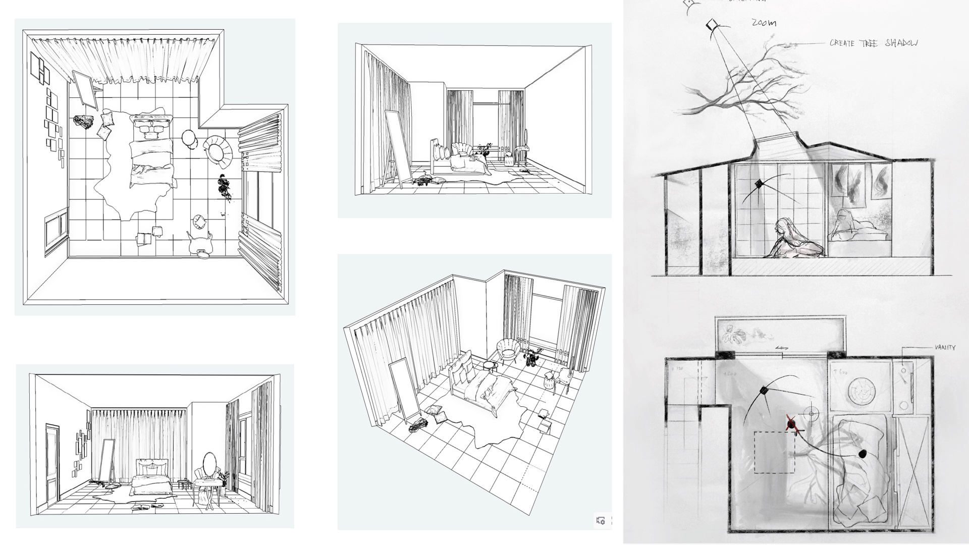 The film comes from Helier Skelter, a Japanese psychology horror manga. The story is about plastic surgery, expressed the Ririko’s empty inner world of being a model and her fears. Destructive psychology is worth exploring. To express her emotion, I created a room that changes with her emotions.