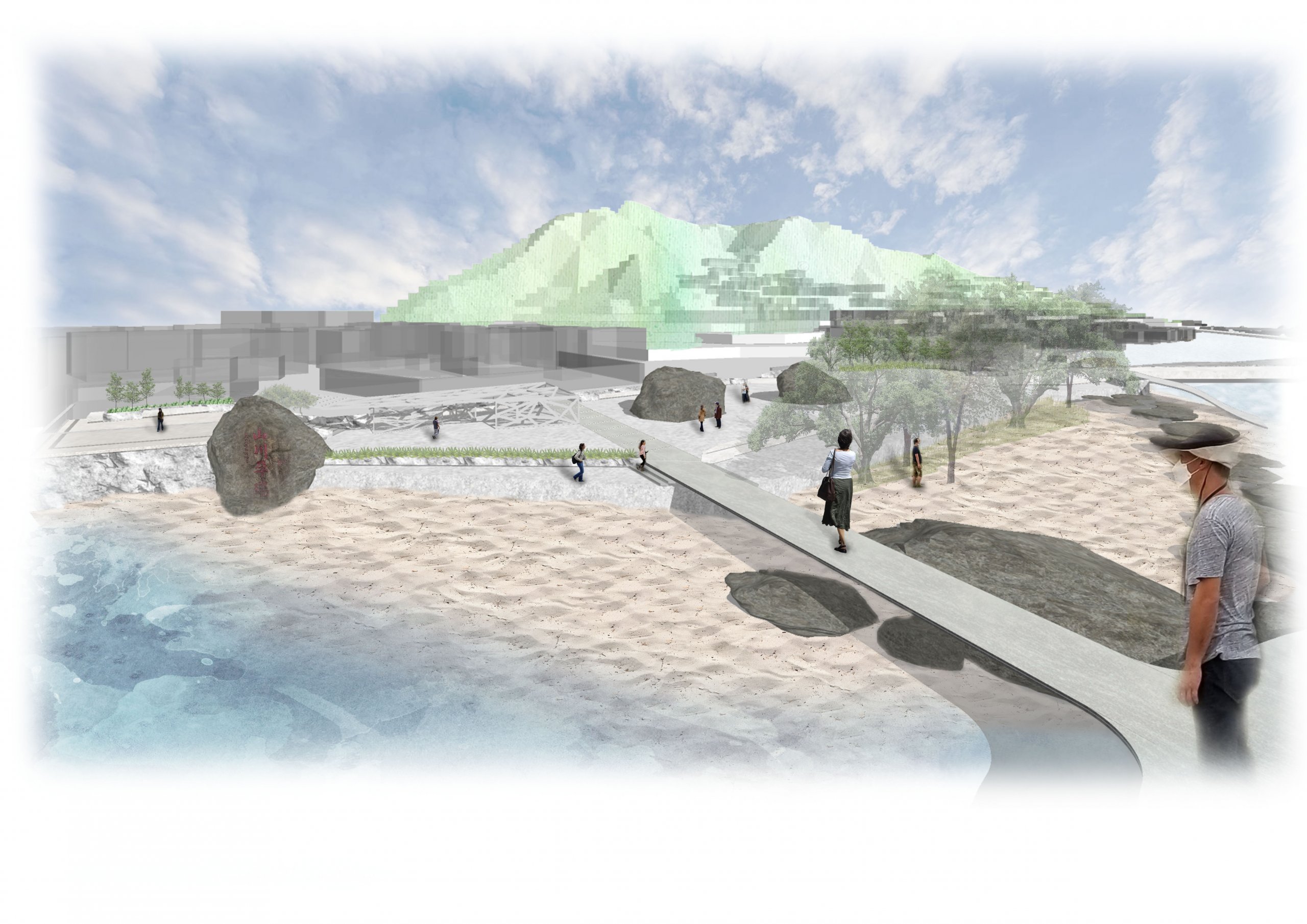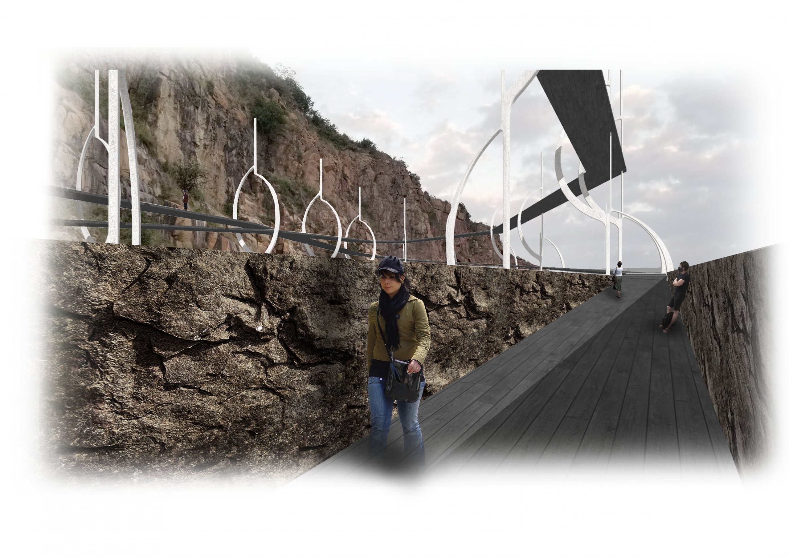 My concept was inspired by the operation mode of the quarry industry in Lei Yue Mun.In the area of Old Lei Yue Mun Quarry, I observed that people’s activities, whether passive or active, have much to do with the sizes or arrangement of rocks. There is a relationship between man and space, in which the land provides some opportunity for people to define or redefine its usage. Moreover, as all the existing sceneries are from the remains of the old quarry industry, the stonemasons are not expected to be of any use nowadays. Hence, it is like a beyond-time conversation. I try to develop different possibilities based on the historical background of the stone mining industry.