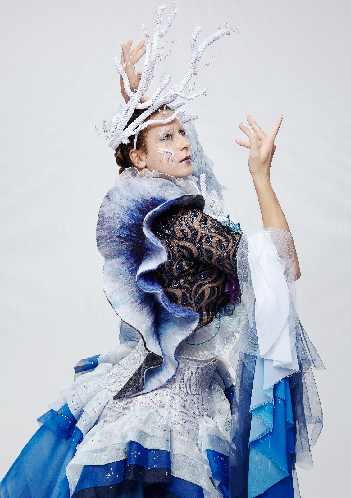Mystère is one of the six Cirque du Soleil shows with a setting of a colorful and fun imaginary world. In this project, I am going to recreate a costume for La Vache à lait, one of the characters in the show. Being the goddess of the ocean who is responsible for maintaining the ecological balance in the ocean, the coral reef is her incarnation. Affected by global warming, her abilities gradually lost, and the color of the coral reefs began to fade and disappear. As time goes by, can she regain her beauty and vitality?