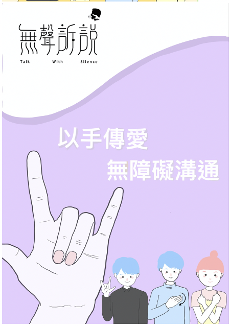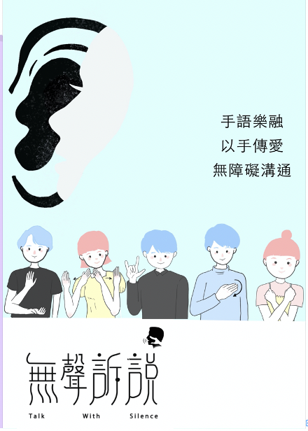 Talk With Silence uses illustrated booklet and posters to promote the understanding of hearing impaired persons to the public. It also aims to deliver messages on the difficulties encountered by hearing impaired persons in their daily lives and the importance of sign language to them. Apart from attaching a basic sign language note, a sign language application software has been designed for people can learn more about this unique type of language.