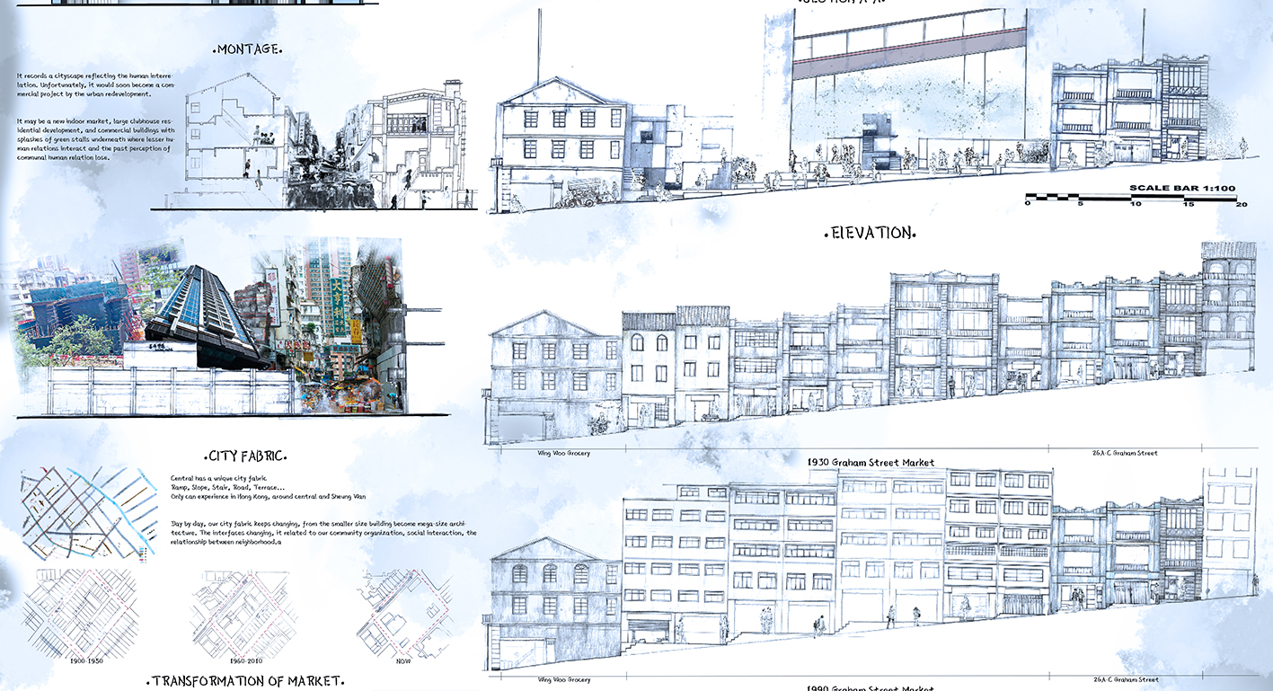 Being an area in the Central District where Chinese neighbors gathered back in the early colonial era, the market community around Graham Street demonstrates a distinct feature of itself. It was a sloped lane with stalls side-by-side vending vegetables, steaming tofu, hot soya milk, fresh meats, and assorted seafood, etc., there are always sounds of shouting, bargaining, and chattering. At a glance, the area is like a container of communal living where people would care for each other. We may define a new concept of communal market from the perspective of human interaction and revitalization. In the Graham Street community, intangible values, distinct cityscape that symbolizes prosperity, and neighbors gather around the sloped lane to build up their unique relationships.