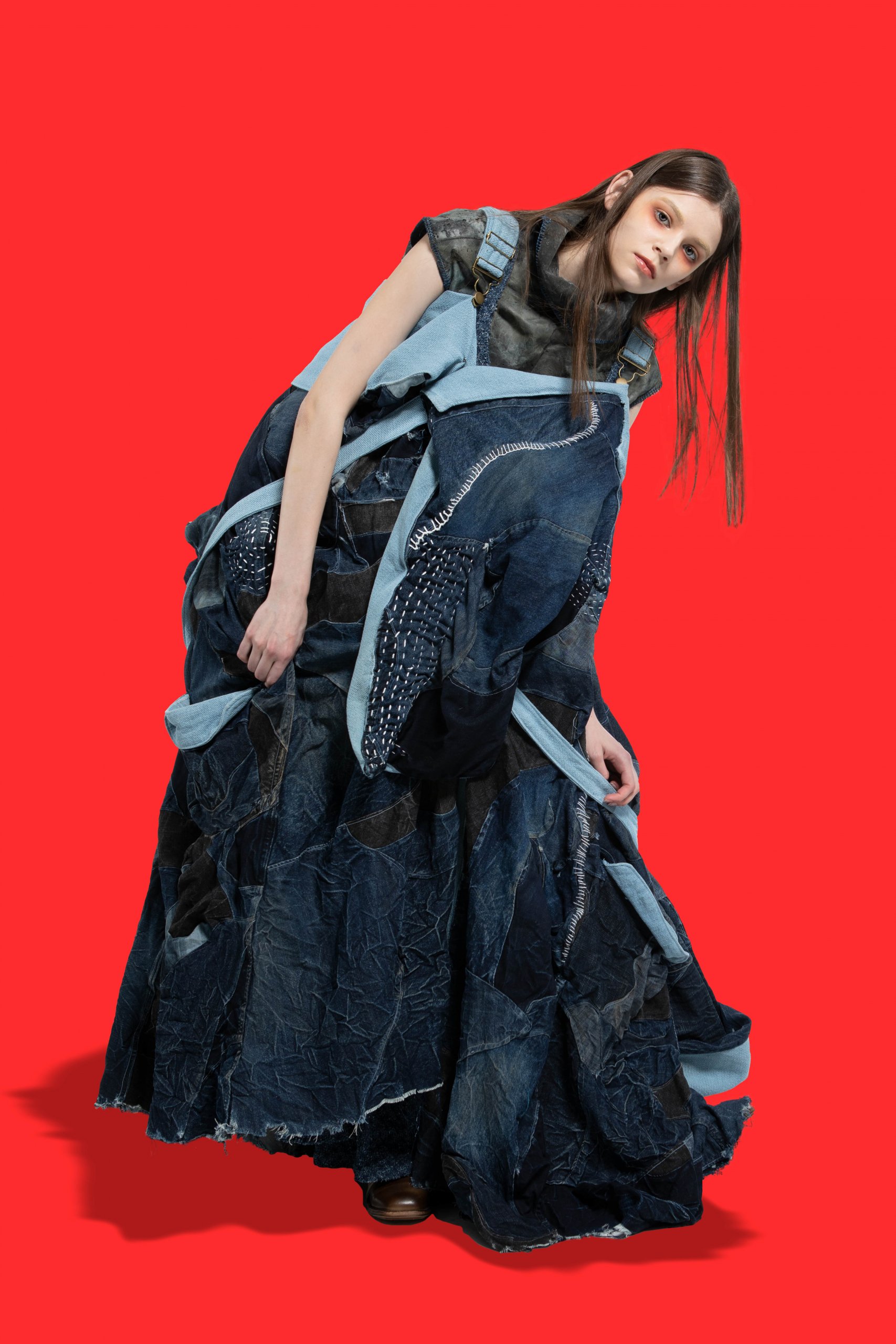 Traditional culture, like a fallen whale, enables innovative ideas to flourish. My project used Japanese Boro and camouflage patchwork together with kombucha vegan leather as the key elements. The fermented mushrooms in kombucha are dyed with natural blue to produce a biodegradable material incorporated with the techniques of traditional blue dyeing and printing techniques.