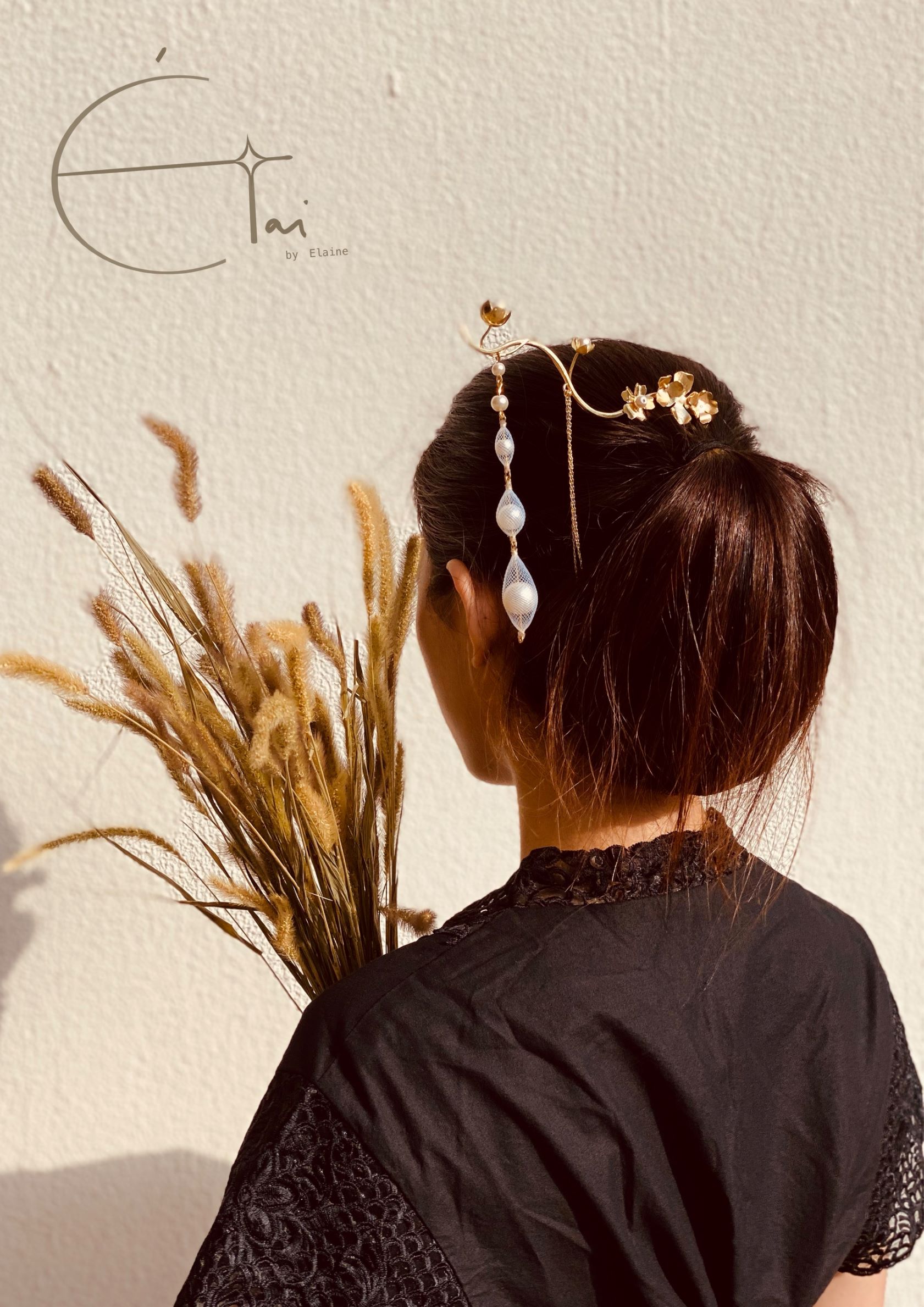 Ayu Melati is a collection of jewelry inspired by Indonesian wedding attire. On her wedding day, the bride will often have on the back of her hand a tattoo called “henna”, which has inspired the making of the bracelet. Meanwhile, the hairpin is a simplified design of the traditional Indonesian wedding headpiece.