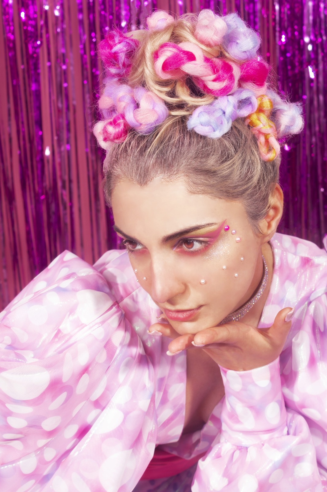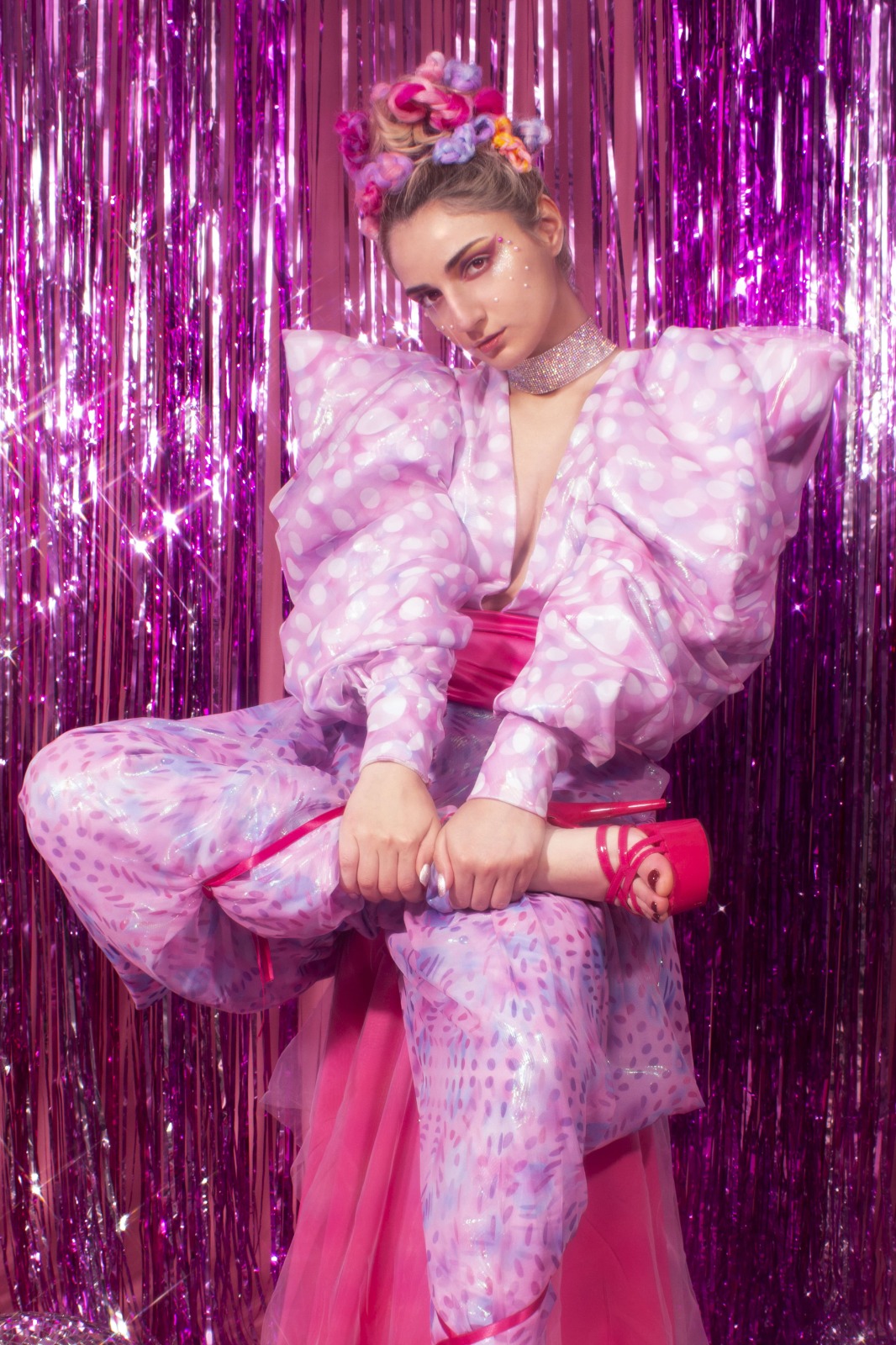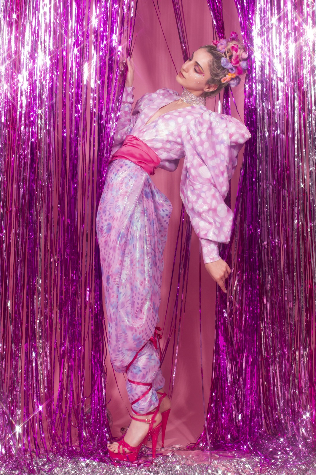During my research on Studio 54 clubbing culture, I was inspired by the Hippie style and Kusama Yayoi. Hence, I decided to make a jumpsuit with polka dot and psychedelic art.