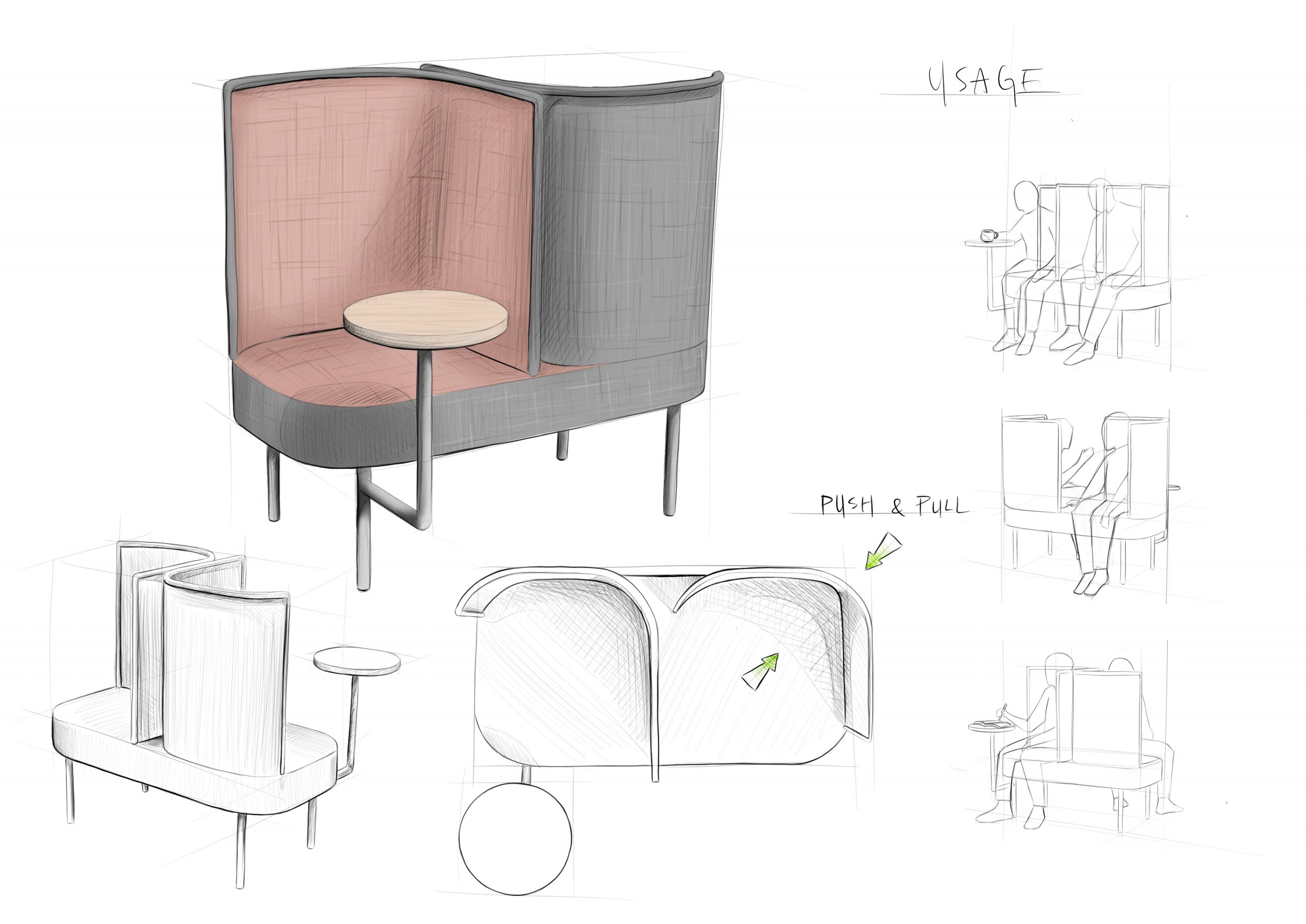 Lightly twirl the backrests away from facing direction, and they could be re-molded into partitions. This design allows the chair to come with flexibility and provide 2 different space modes - either as one love seat, or two partitioned single chairs.