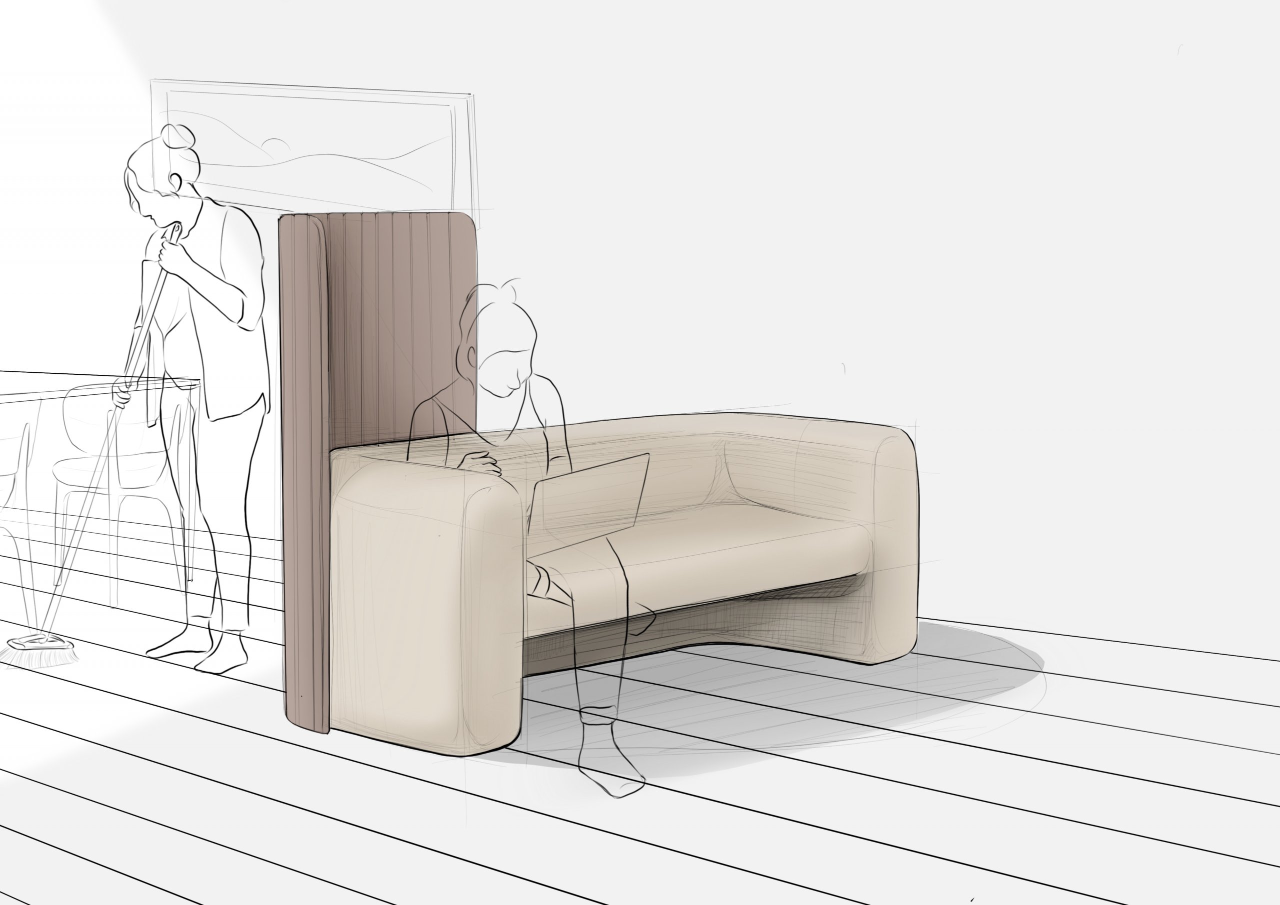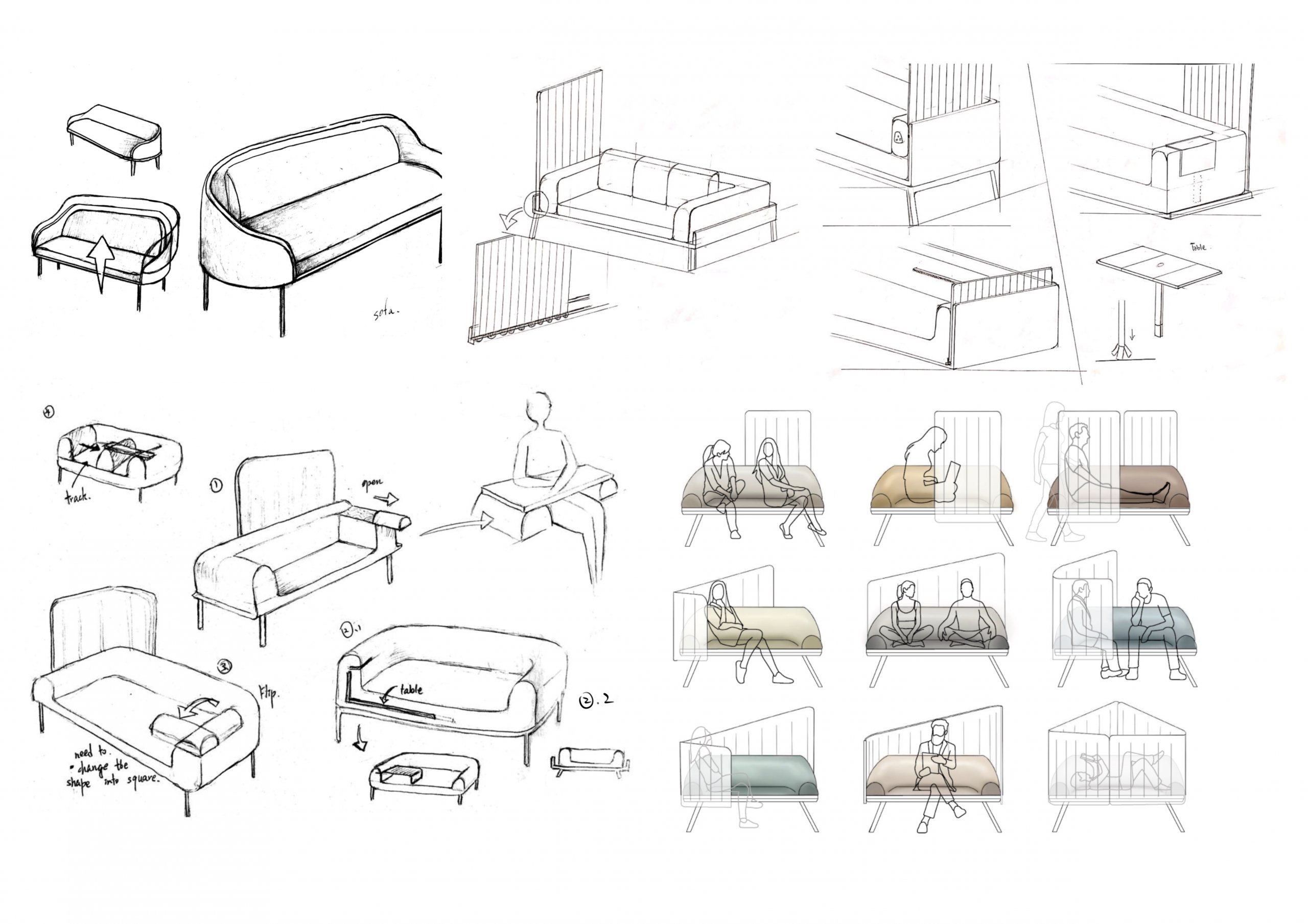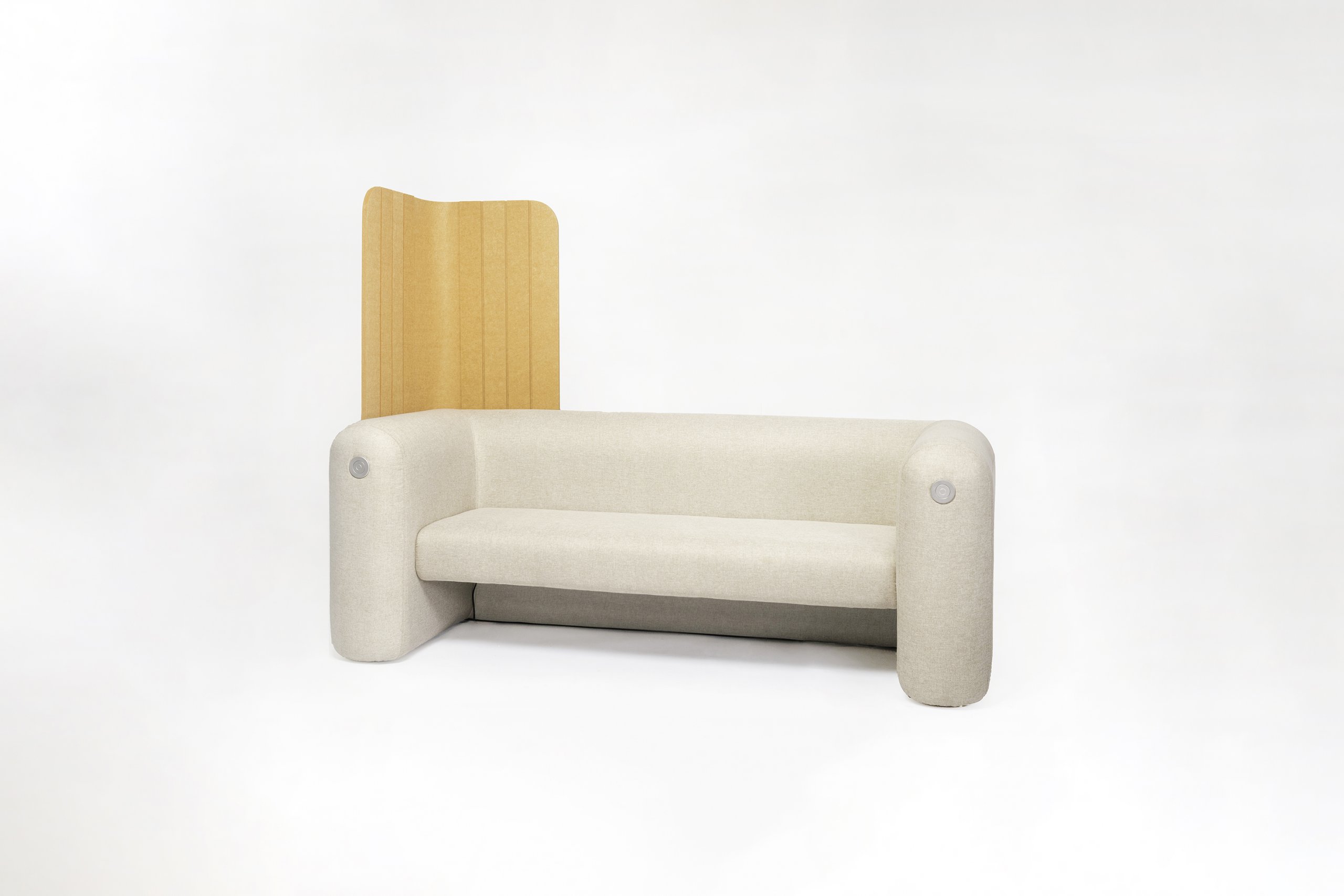 Glide is a sofa that can provide semi-privacy while you are working or studying from home. With the slidable panel, users have the autonomy to set the blocked position. When user starts the video call, the panel can be pulled back to prevent others from being captured by the camera or disturbing the video call. In addition, users can move the panel freely according to their own preferences.
