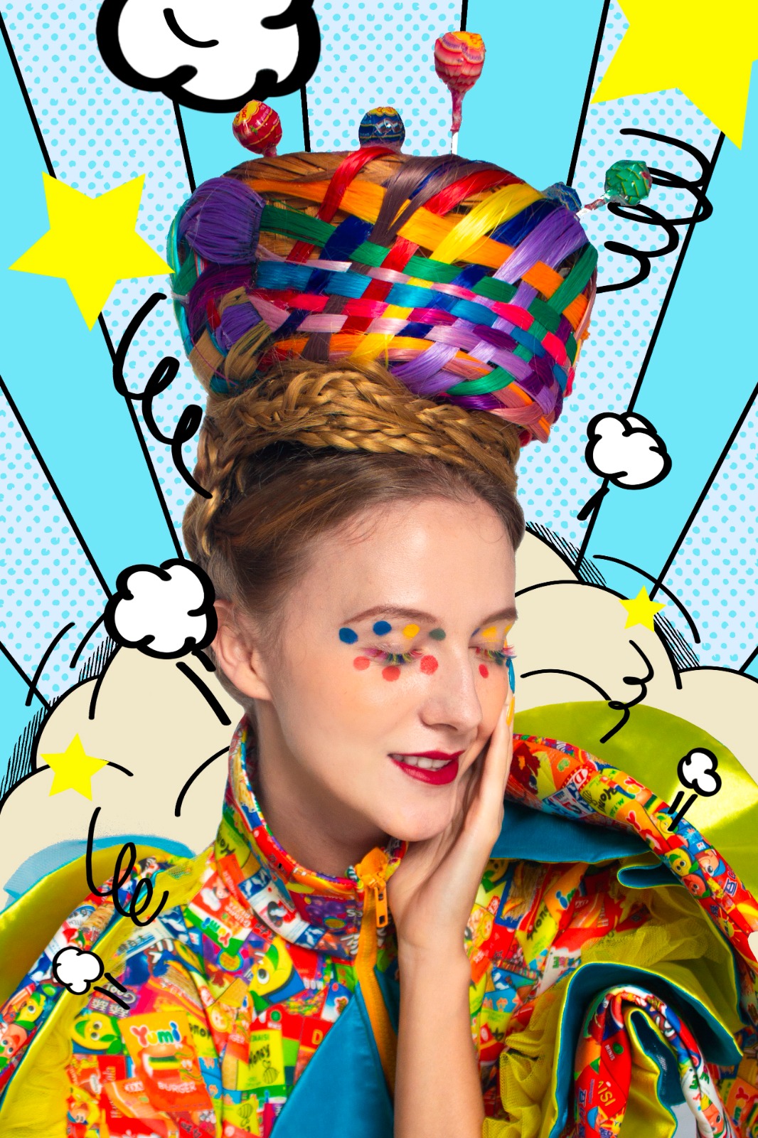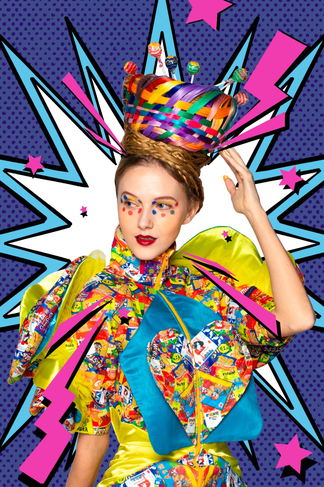 What inspired me the most is an old grocery store was the colorfully packaged snacks on the shelves. When I was a child, my eyes would always be drawn to the different colorful snacks whenever I went to the snack stores. Hence, I have chosen some classic snacks and contrasting colors for this design.
