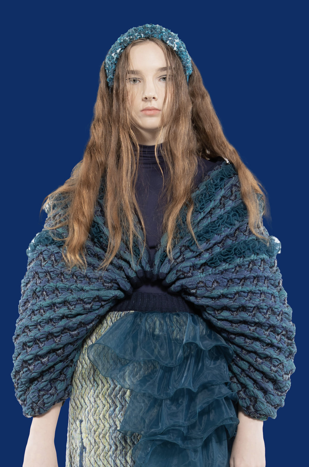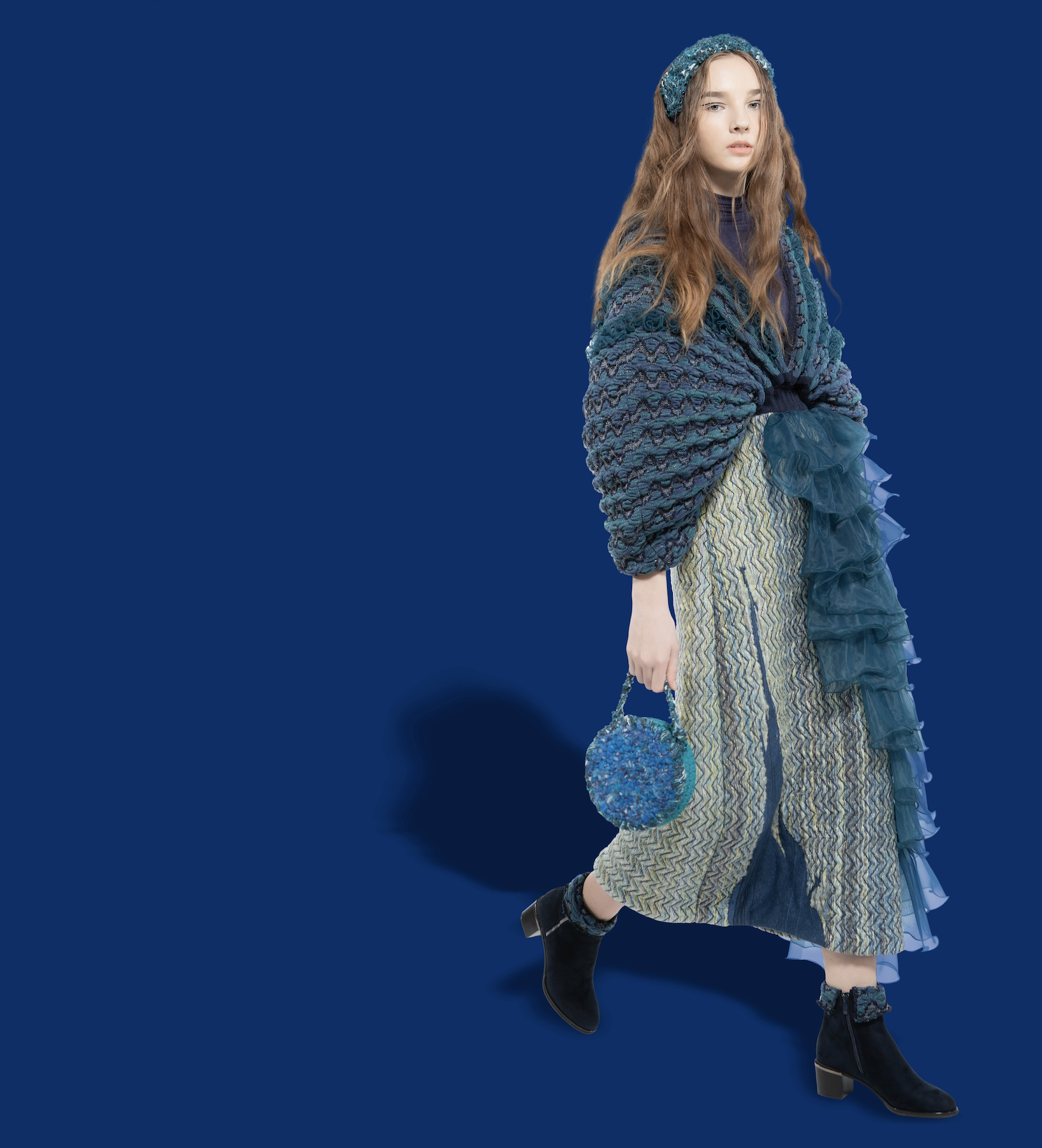 This collection was inspired by Vincent Van Gogh’s story. In spite of the pain and stress from his mental illness, he never gave up his passion for painting. His sadness was often expressed through his artwork. The color tone and knitting pattern of the collection are inspired by the painting of Starry Night in order to pay tribute to his artworks.