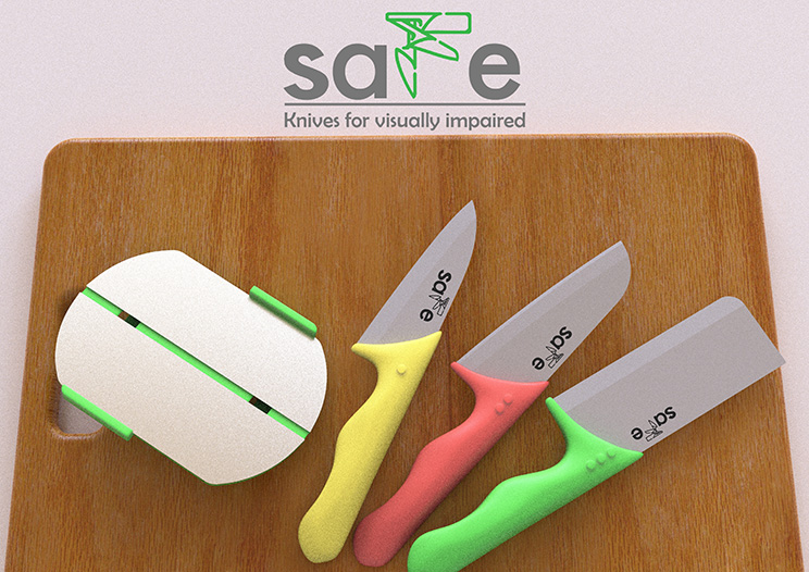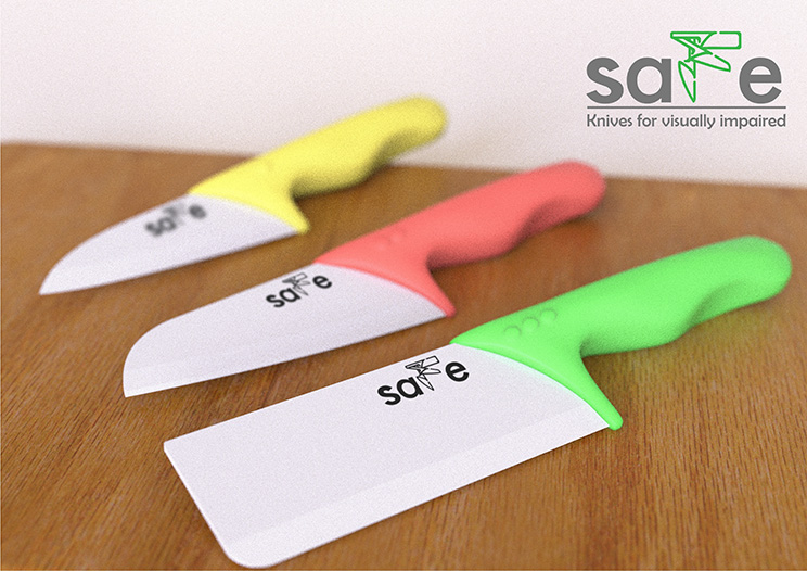SAFE is a set of knives and sheaths specially designed for VIPs. The sheath can also be used as a metal finger guard in protecting the users from injury.