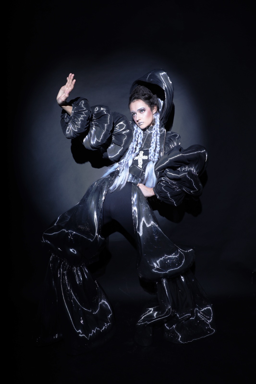 DES4004 Final Year Project In Studio 54, there are a lot of spotlights shining in a dark place. Everyone wants to be the focus of the audience. The reflective fabric of the costume makes the wearer extraordinary as it creates an eye-catching effect under the spotlights.