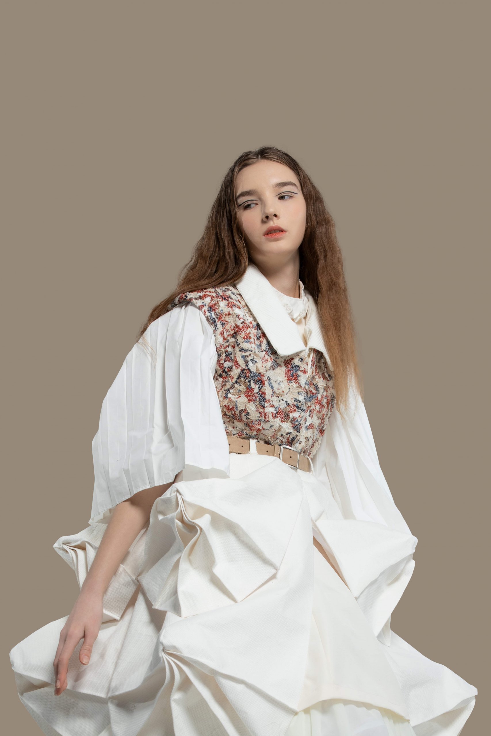 The design concept of the collection is to commemorate and draw people’s attention to Tong Lau (Tenement House). The collection is designed with a decorative patchwork of different fabrics that mimic Tong Lau’s structure to present this kind of architecture from my memory.