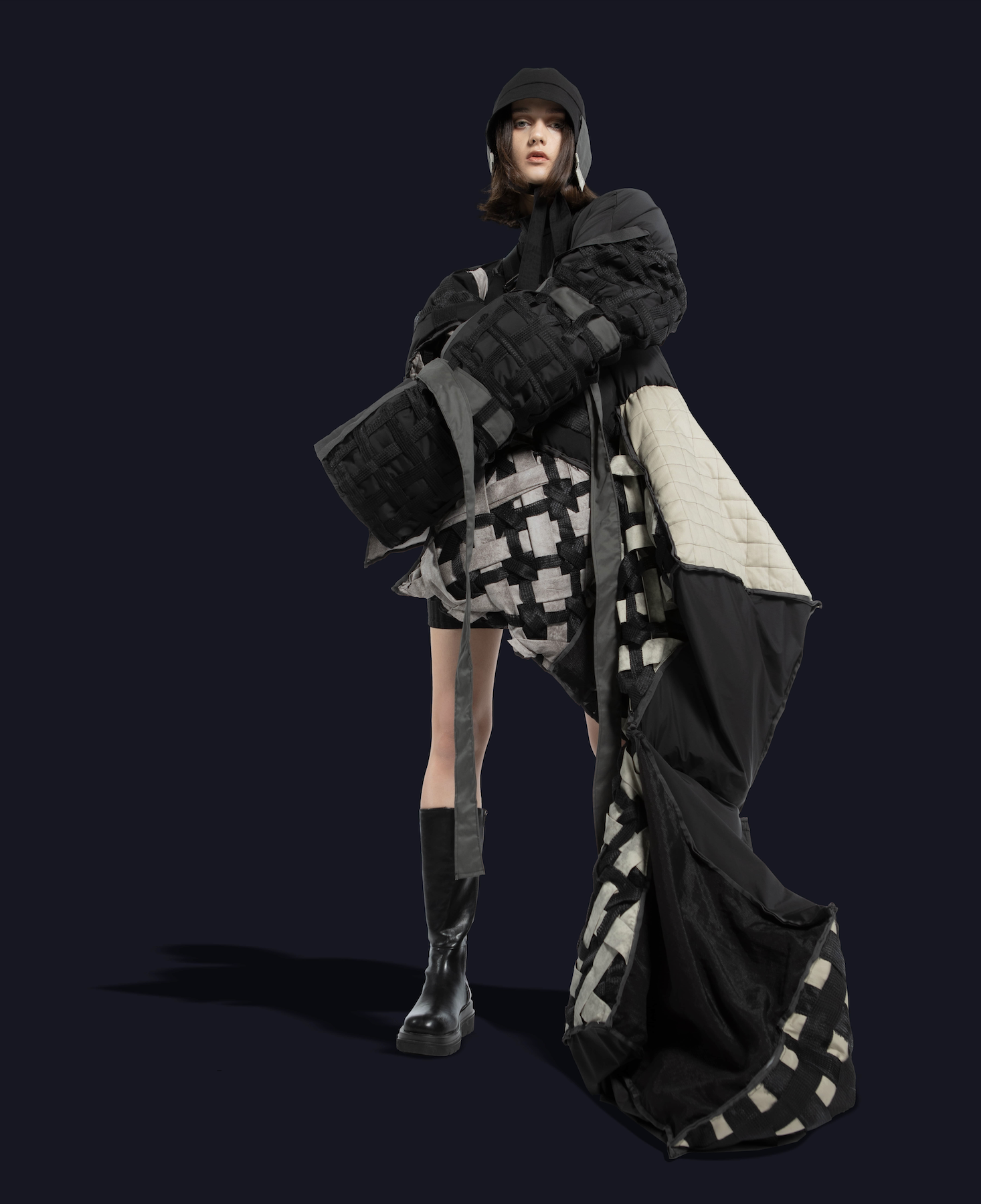 It is a valuable experience that allows me to transform my imagination into authentic fashion pieces. Inspired by the architectural elements from futuristic science fiction and blockbusters, my final year project is a combination of two key weaving patterns. UTOPIA is an imaginary place with a symbol of perfection. As I would like to present the idea of minimizing waste disposal in my collection, my pieces are basically designed in rectangular shapes. Weaving patterns that aim to enhance the aesthetic quality of my entire collection are another highlight in my design.
