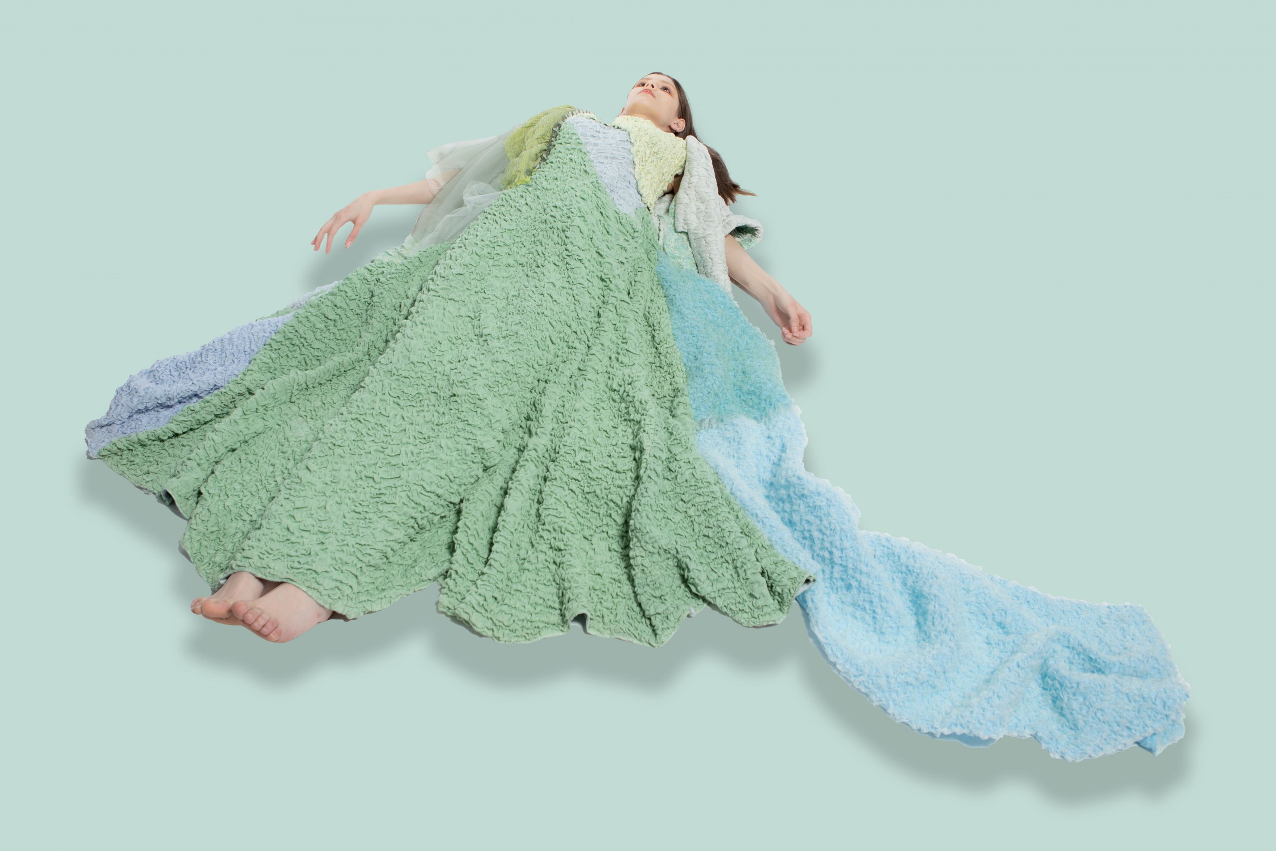This graduation project is inspired by the feeling of waves, which is like a soft touch to the skin that helps to free your body and mind. The peaceful and calm waves carry the worries away and cleanse our souls. While laying at the lakeside and listening to the restless waves crashing on rocks, I started to imagine the feeling of immersing myself in the water and floating in the midst of waves.