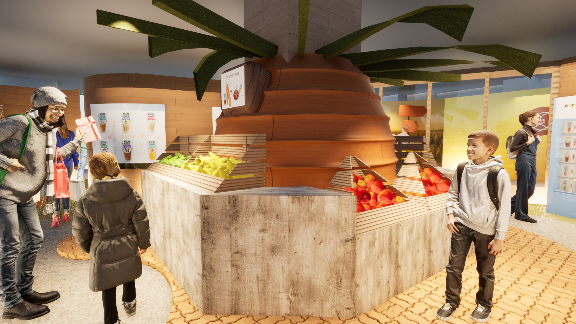 Due to misunderstanding and lack of knowledge, prejudice against wonky vegetables and fruit leads to a habit of wasting food. This exhibition aims to show complex food waste issues and knowledge to public through an eco-style indoor exhibition and store space experience through the Kromkommer brand.