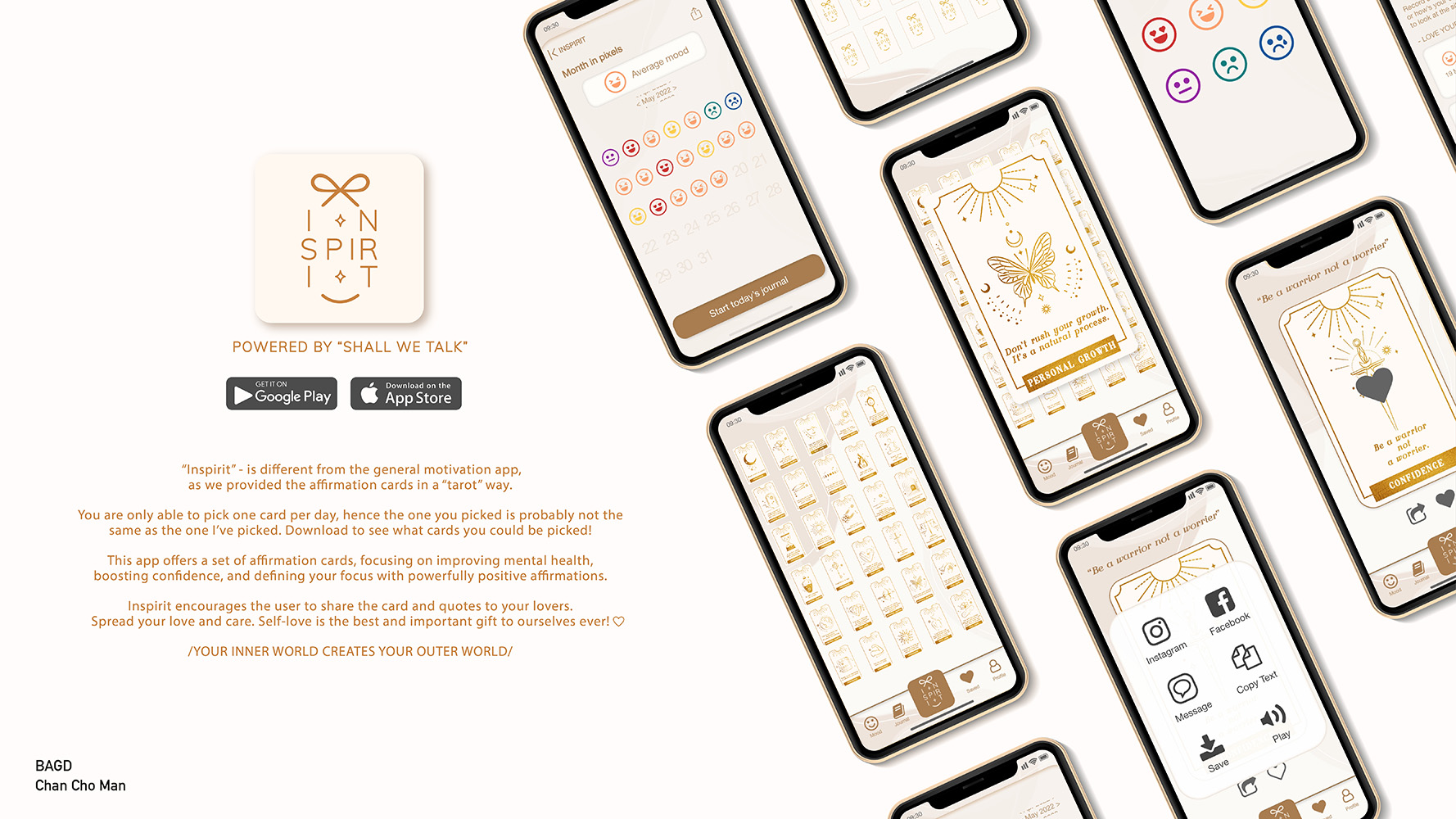 Cooperated with Shall we talk, a set of affirmation cards and mobile app are designed to help rewire brains and build self-esteem. Users can empower themselves with powerfully positive statements.