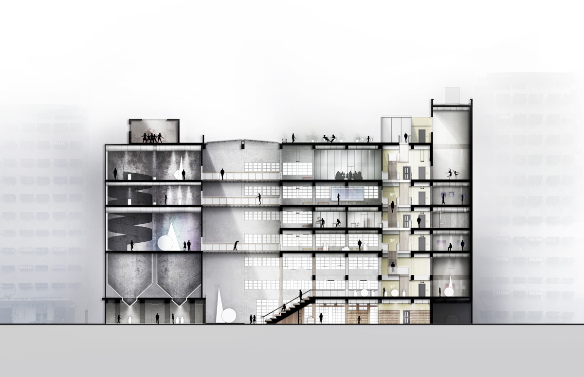 Cultural heritage is always regarded as a continuing process supported by sufficient promotion and corresponding cultural avenue to encourage cultural participation between generations. This proposal revitalises the Hong Kong Flour Mills building in Kwun Tong. By focusing on the proposal of a cultural centre as a common groundwork, it encourages cultural exchange for young cultural lovers and local cultural professionals.