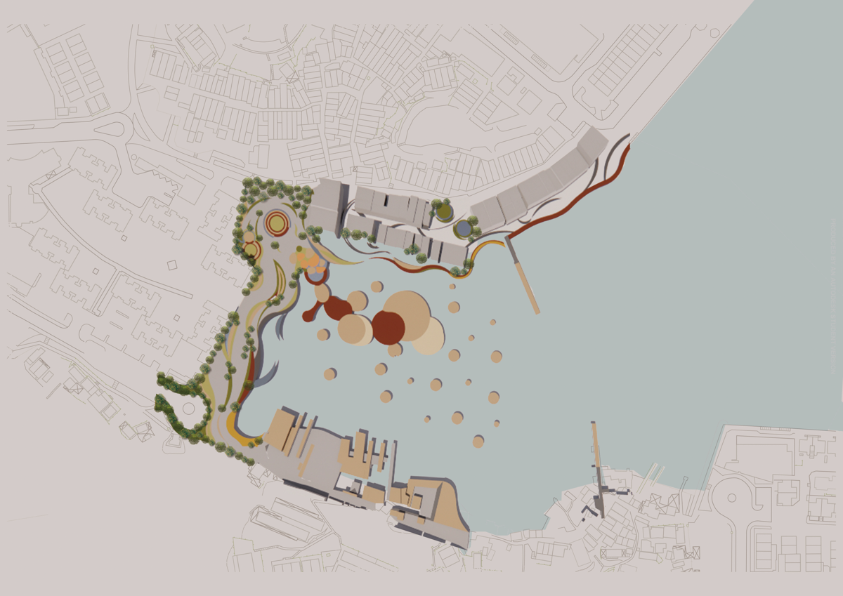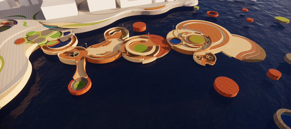 A conservation Urban Landscape design is desired to carve out a memorial vernacular floating community. The fishermen's lives evolved from separation in the past to the current diversity and inclusion on land. Like pieces of oval duckweeds that float and flow; the boat people's life, dragonflies stay and dip, birds rest and sing, sunset light cut and bends, raindrops fall and spread.