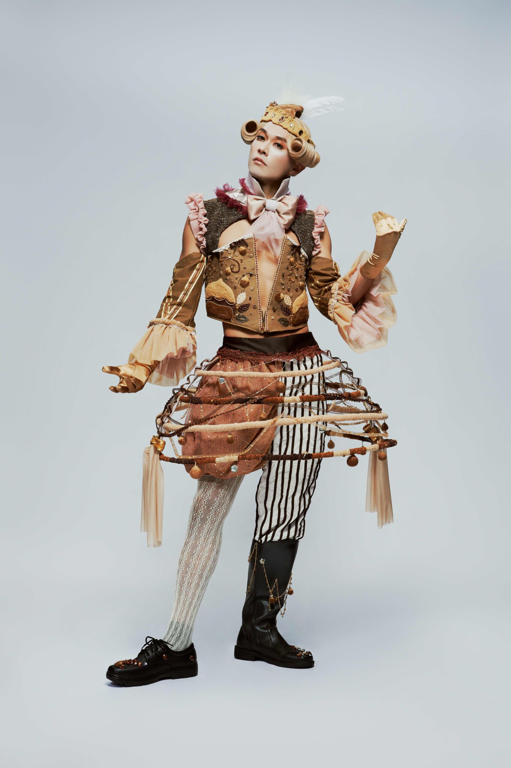 Brown is the colour of autumn, the time of the year when chestnuts are harvested. Mont-blanc’s main colour is also brown and exudes a sense of autumn. The gorgeousness matches perfectly with the feeling of Rococo. A male character dressed in a rather feminine style was created by incorporating Rrococo femininity into the costume.