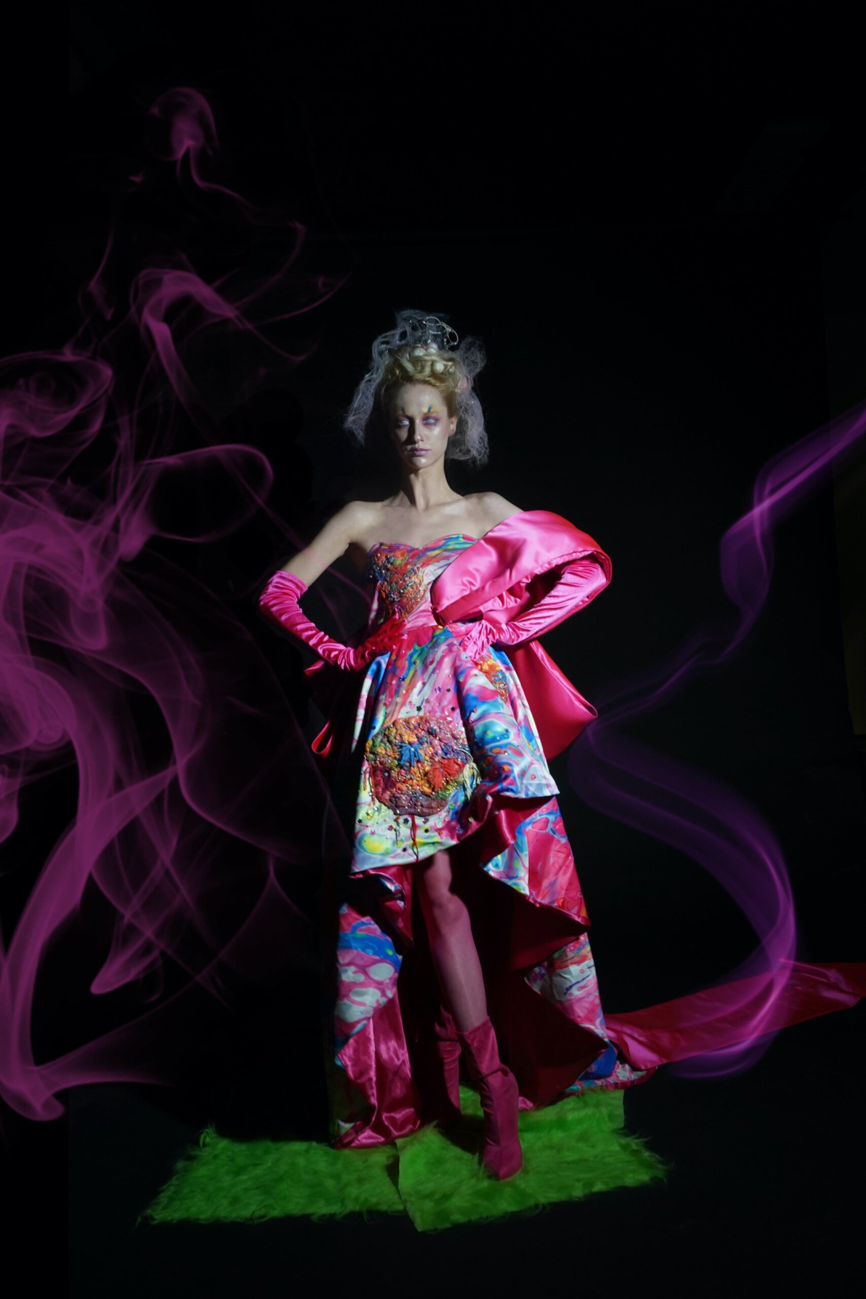 My theme revolves around the idea of psychedelics and self-seeking. By creating my own utopia, feelings such as love and happiness are not necessarily of lower value, and you can realize the perfect world you pursue through your brain. It's like magic, which is so irresistible and full of charm. I have used colours and irregular lines to bring out the theme.