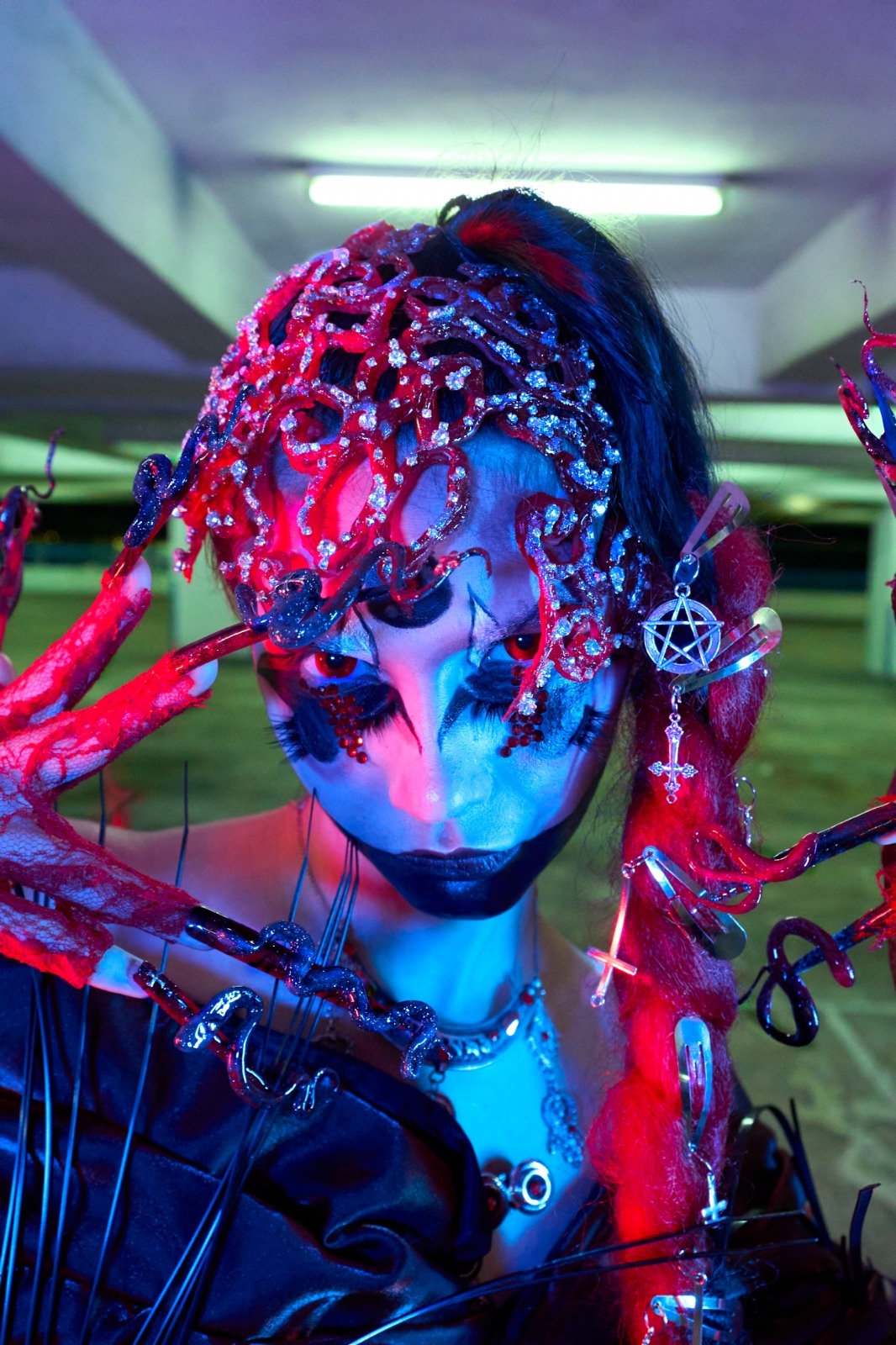 The image created by satanism is related to non-human, which represents Satan itself. Satan’s image will induce the fear in people’s mind. Avant-garde, an atypical and strong feeling, will be projected in this image. My design is based on the image of a goat, which represents Satan that creates a strange atmosphere.
