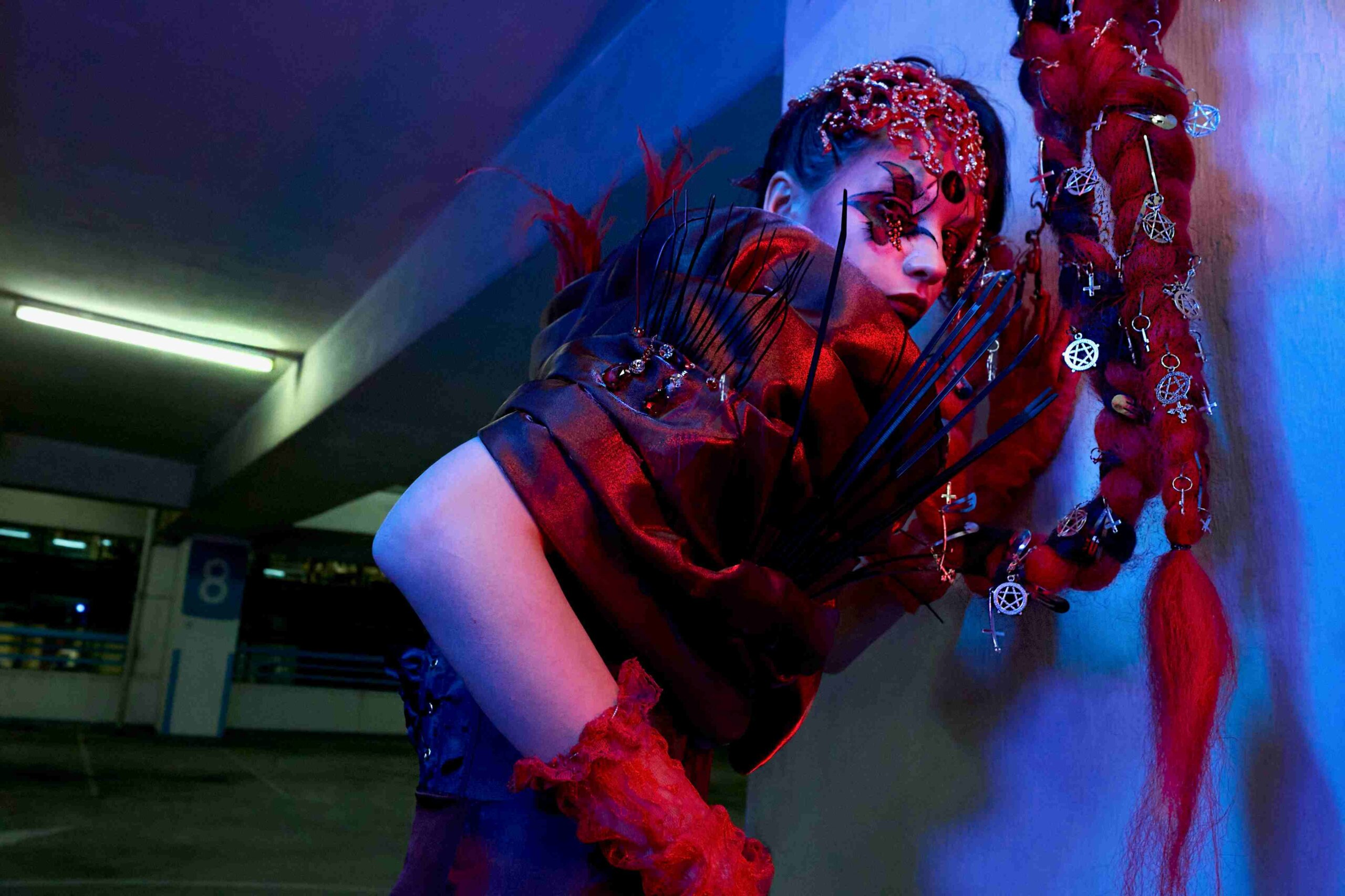 The inspiration comes from ‘greed’, one of the seven deadly sins. A study on the “Satan” culture helps to create an outfit. In fact, greed is part of the human nature. Out of curiosity, they saw greed hiding in a dark corner. The evil, rooted in the human mind, lives in every cell of the human beings and travels in every corner of the mind. It will surround and corrode the human mind whenever there is an opportunity.