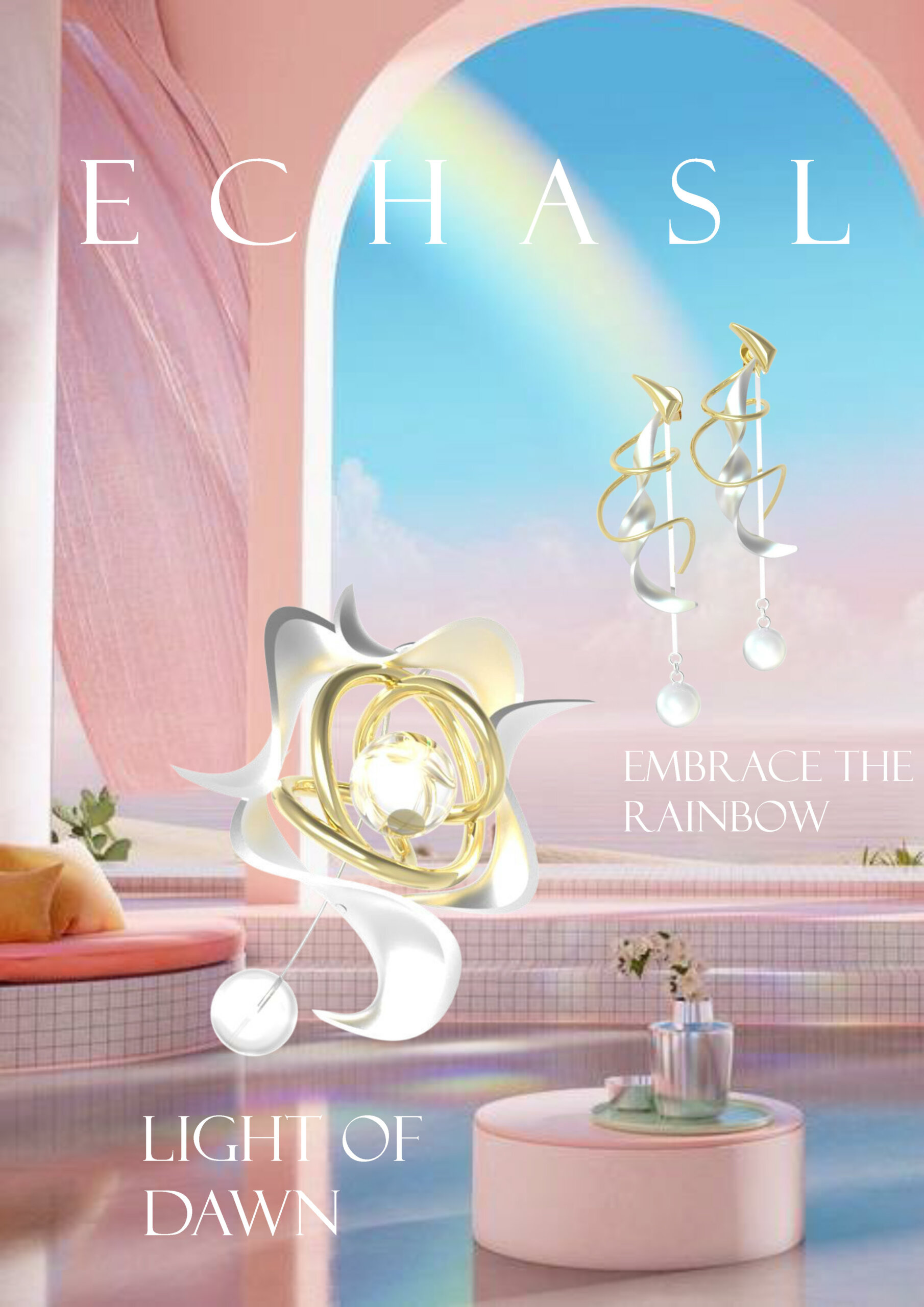 Smooth lines are adopted in my design in creating solid light and shadows that match each other. It seems that vision has power and movement to help the wearers in achieving their goals. In addition, the coloured glass ball is the core light of the wearer's ideal goals. By following this light, the wearers will reach their ultimate ambition.