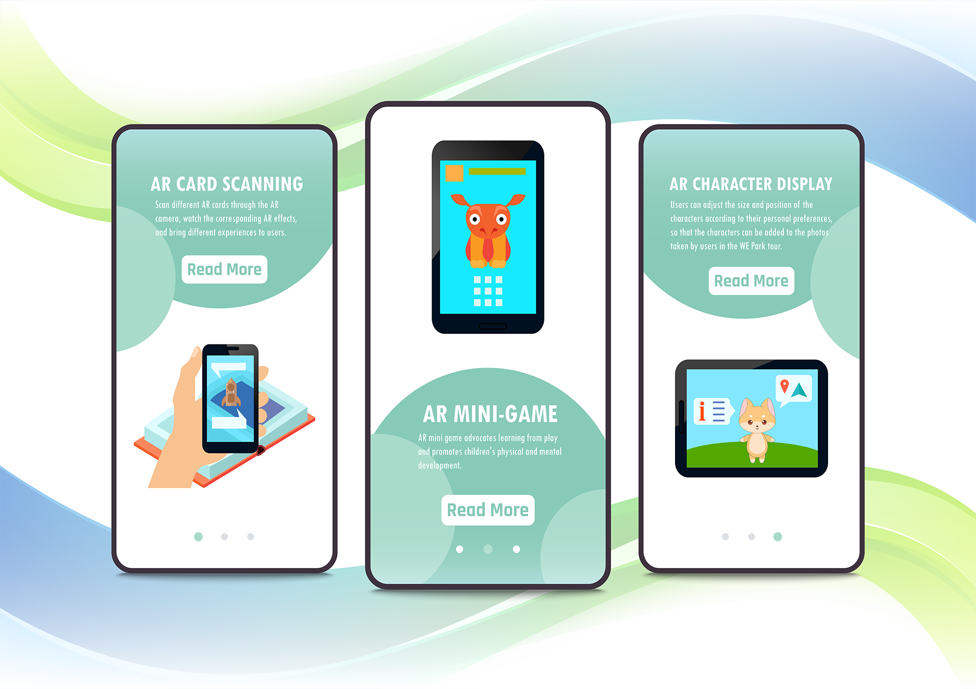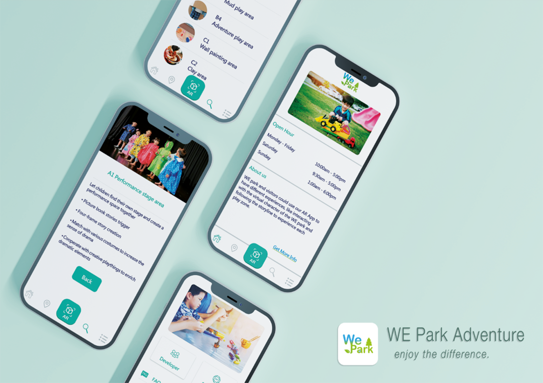 Integrated with the environment and facilities of the park, our project is tailor-made for WE park. Visitors can use our AR App to gain experiences like interacting with the virtual characters of WE park and following the storyline to experience each play zone. Through our AR application, players can have a high sense of engagement with the WE Park environment.