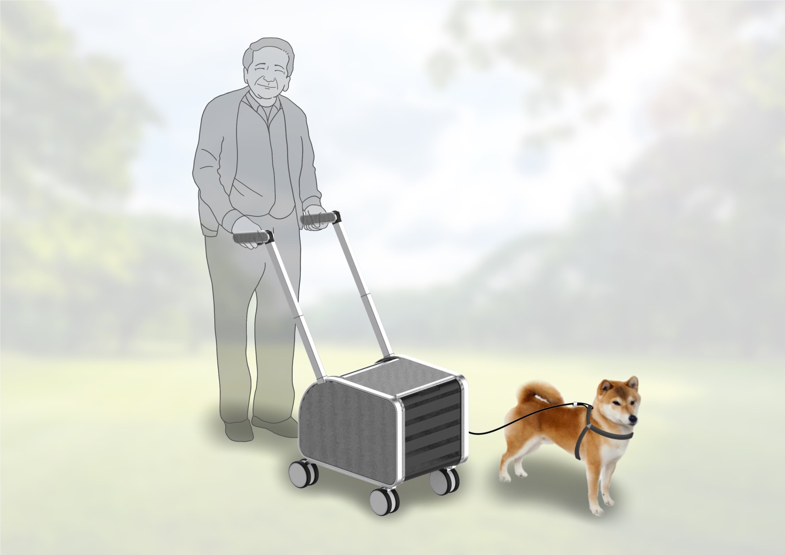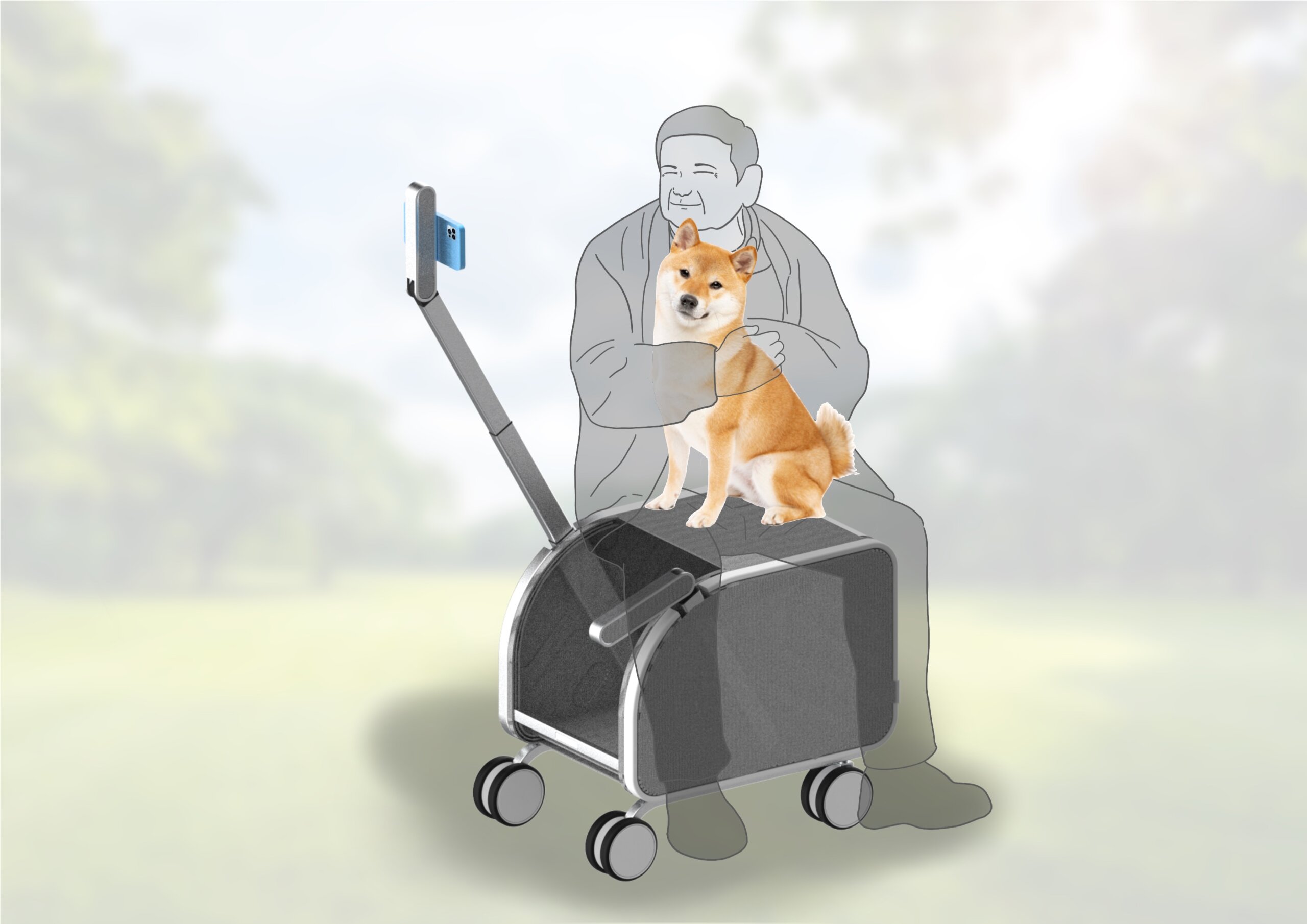 The sturdy and light structure enables the trolley to serve as a stool rest, while the retractable leash attached allows stress-free walks with pets. The magnetic roll-up handlebars hold smartphones for owners to record precious moments with their pets and share with family and friends. AMBLE encourages the elderly to enjoy outdoor activities and adopt a healthy lifestyle.