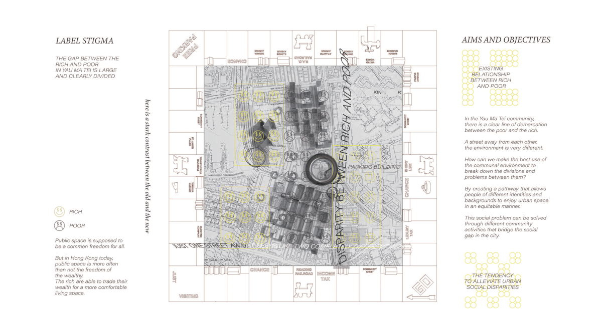 All citizens should have equal access to public spaces. The situation in nowadays Hong Kong, however, is quite different. Generally, public spaces are reserved for the wealthy. In exchange for their wealth, the rich have the option of living in more comfortable environments. There is a clear line of demarcation between the rich and the poor in the Yau Ma Tei community. Despite being only a few blocks apart, the entire environments and atmosphere can be very different.