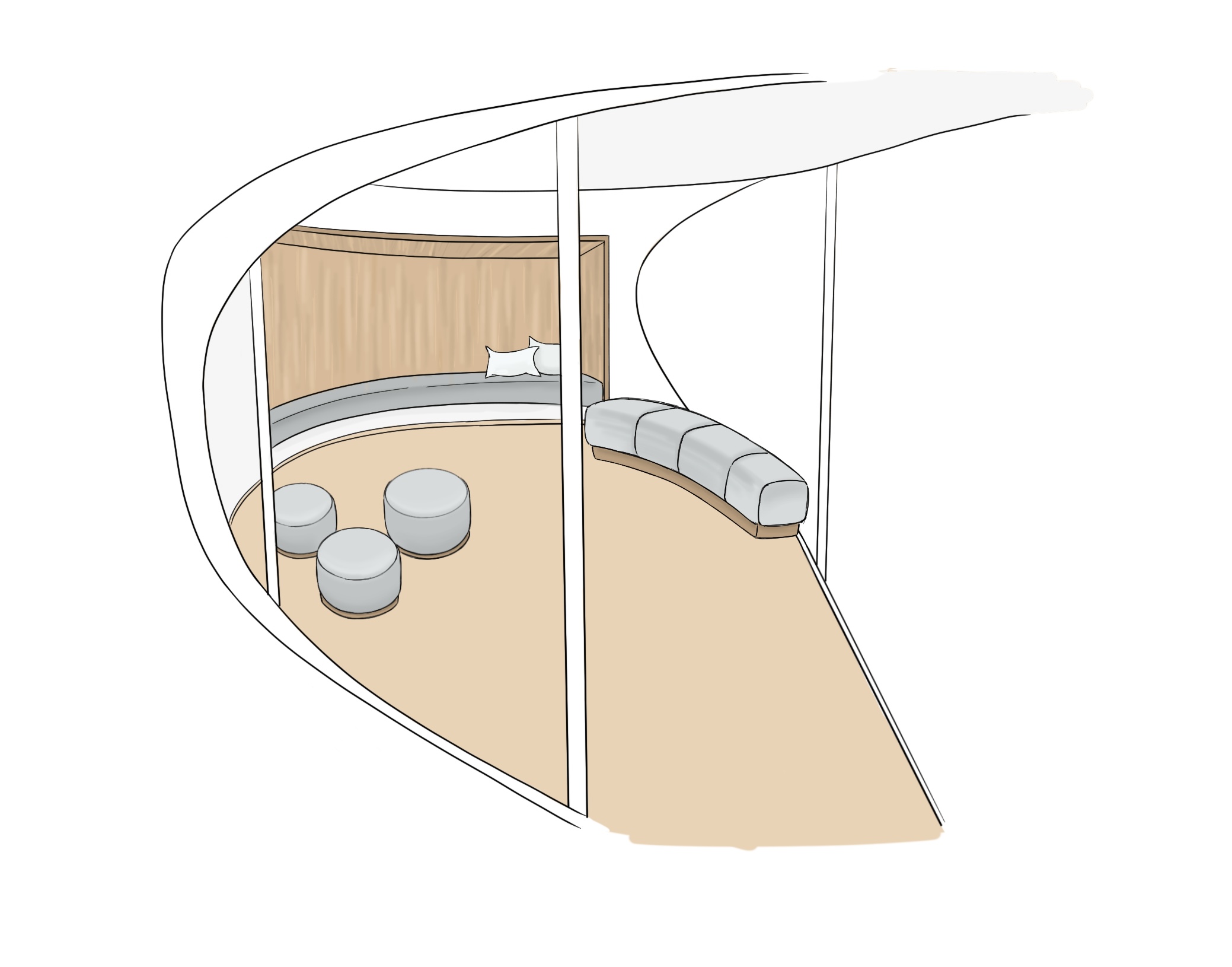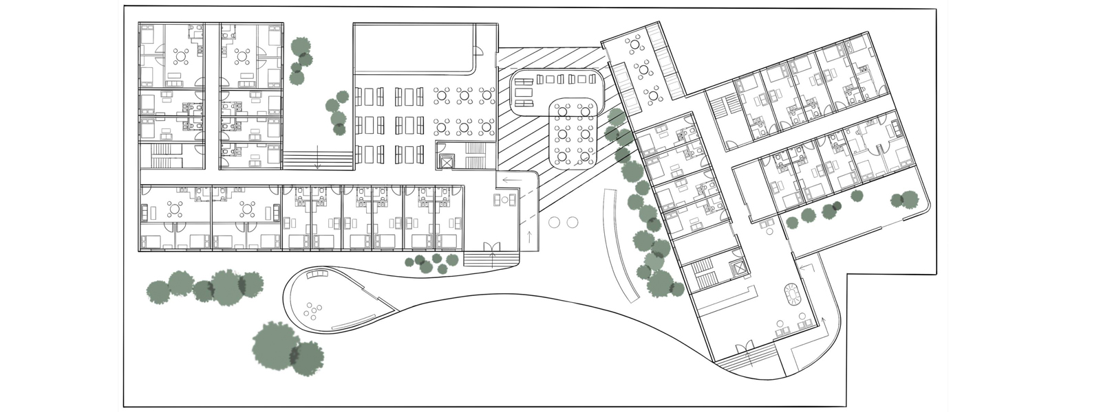 “Link” and “Interact” are the main design concepts of the project that aim to create a harmonious and caring space for elderly to live together while encouraging interaction. Curve and interlocked forms are used to represent the “link” concept and add elegance to the space.