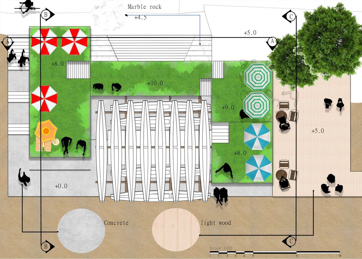 The term embracing denotes a link between people in an act of affection. It also represents the acceptance of ideas or situations with enthusiasm. This project proposes that the site embraces the Stanley community and its activities: family day events, walking along the beach, dog walking, dining, or simply socialising. Since the site is at the opposite side of the main shopping area, the goal of the project is to launch activities that will attract the locals to enjoy nature and the beach and water sports, thereby strengthening the links between the Dragon Boat Association and the community.