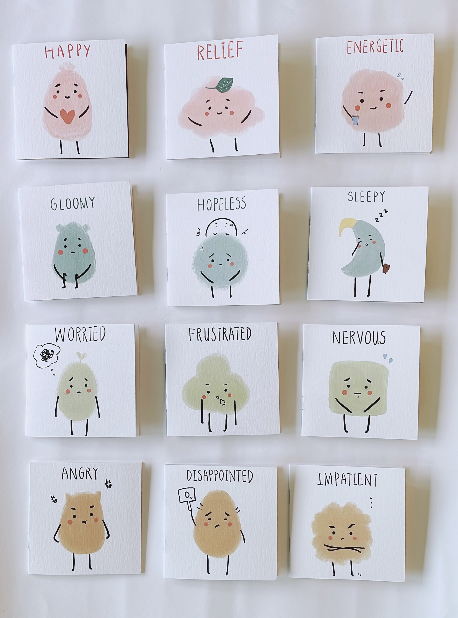 The project aims to make use of some pure and simple characters to bring out stories of different emotions. By creating post cards, card holders, etc., we hope to help offering love and care to people frustrated by negative emotions.