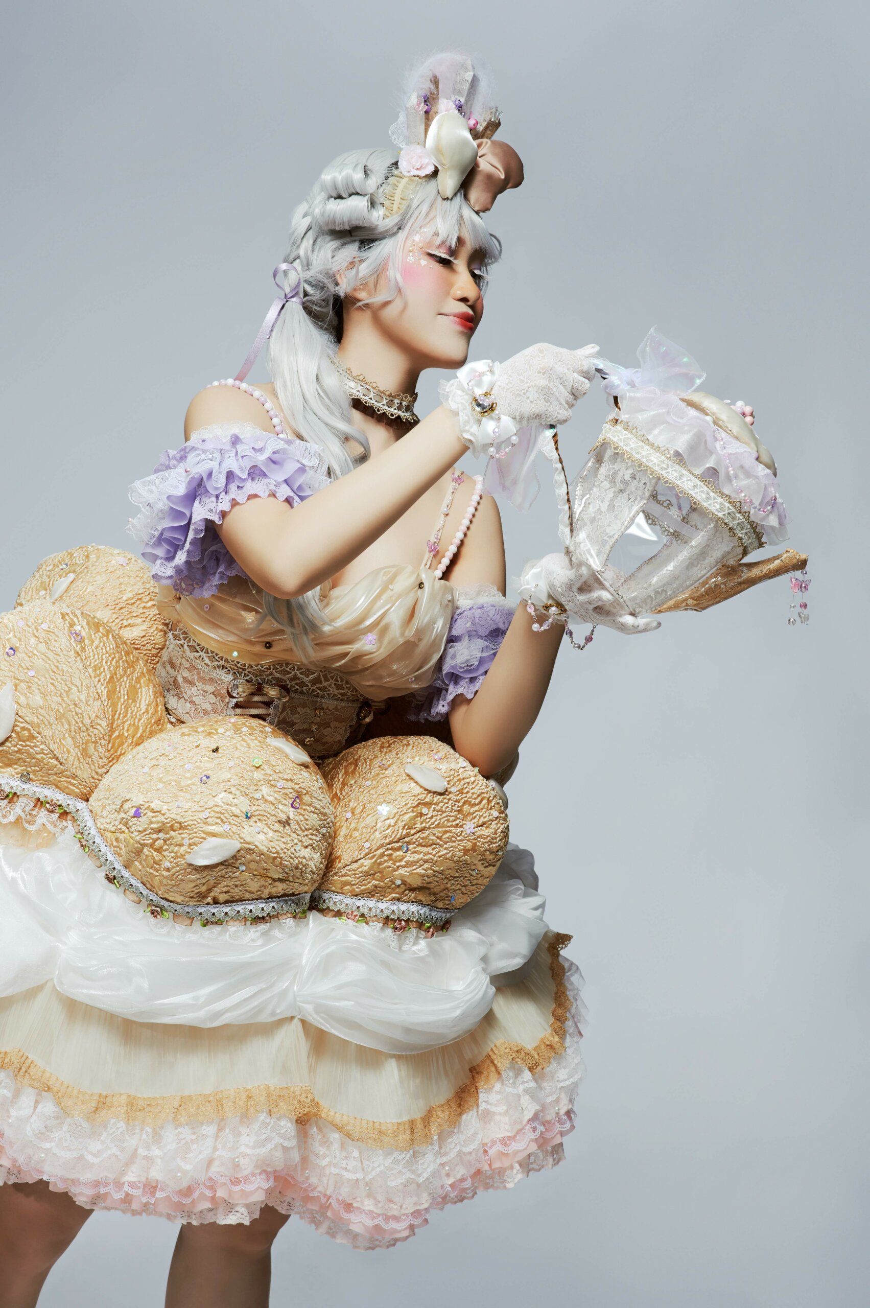 “It is time to leave for the party.” Unaware of the dark side of human nature, a naive girl cheerfully changed to her favourite dress and left home happily. The Paris-brest was chosen as the theme, along with Rococo-style laces and bows, to create a cute and sweet image.